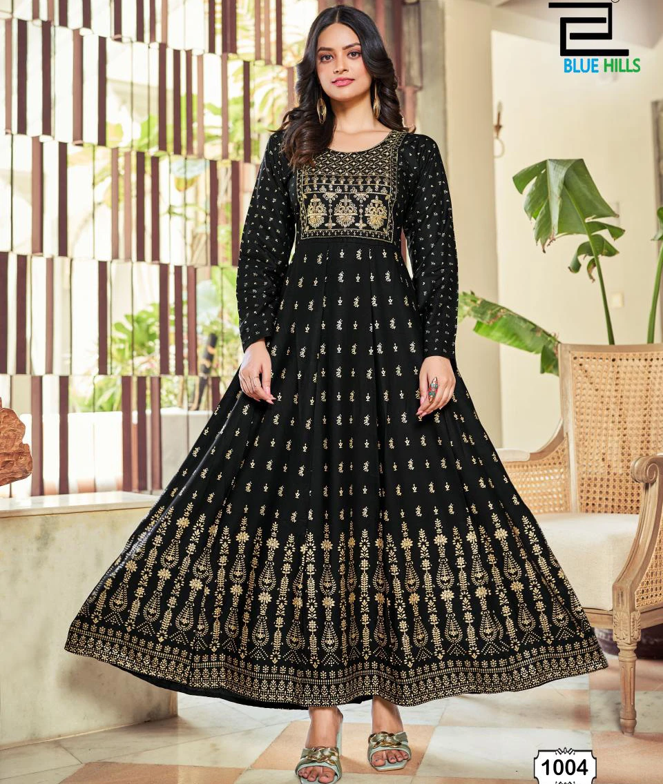 - Top: The Anarkali Gown is made from Rayon 14Kg Foil, known for its softness and drape. It features intricate Classic Neck Embroidery Work, adding a touch of sophistication to the outfit.