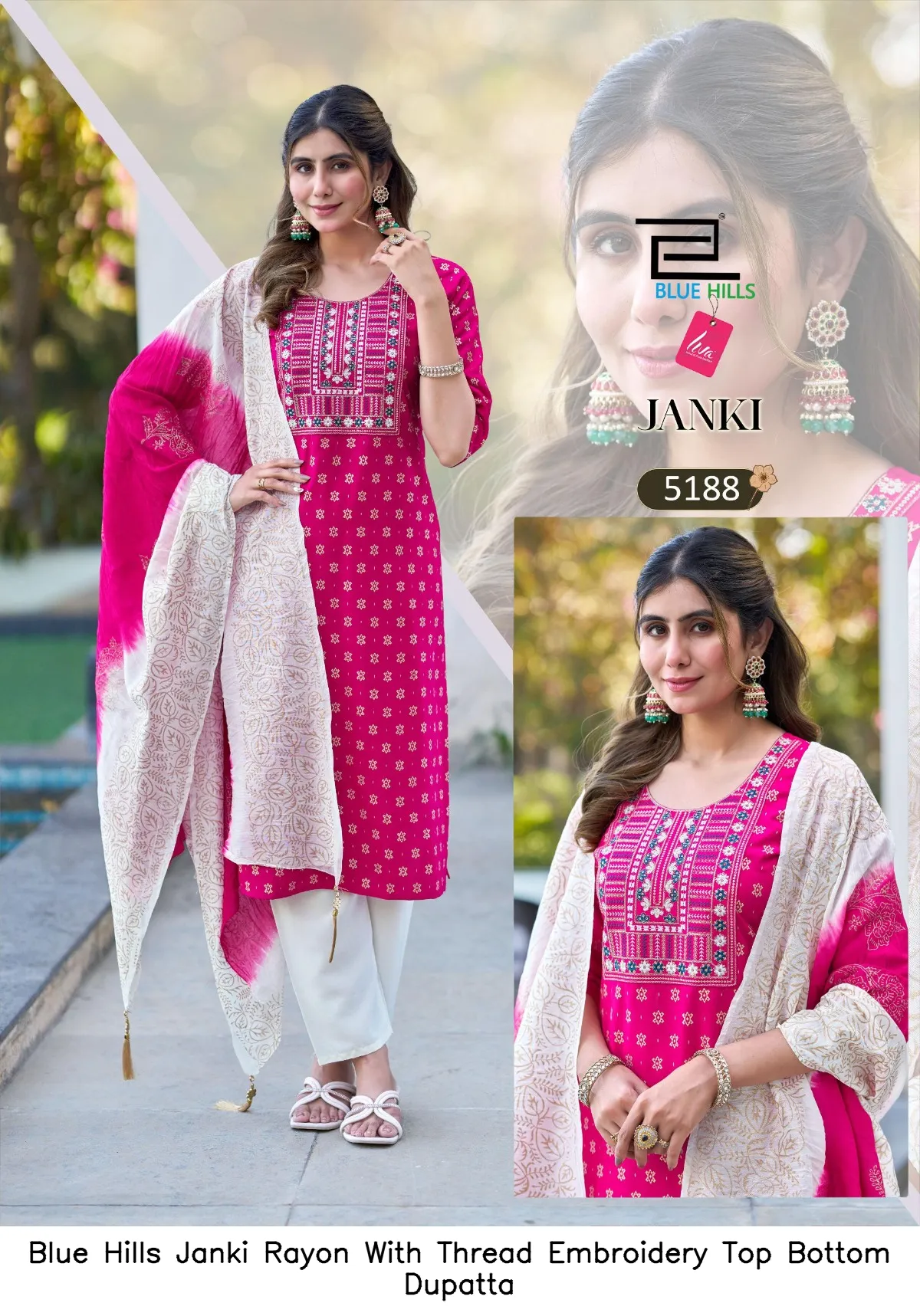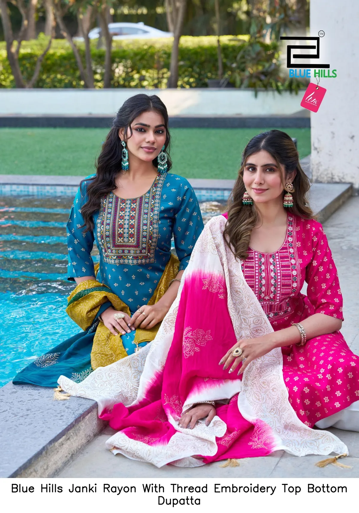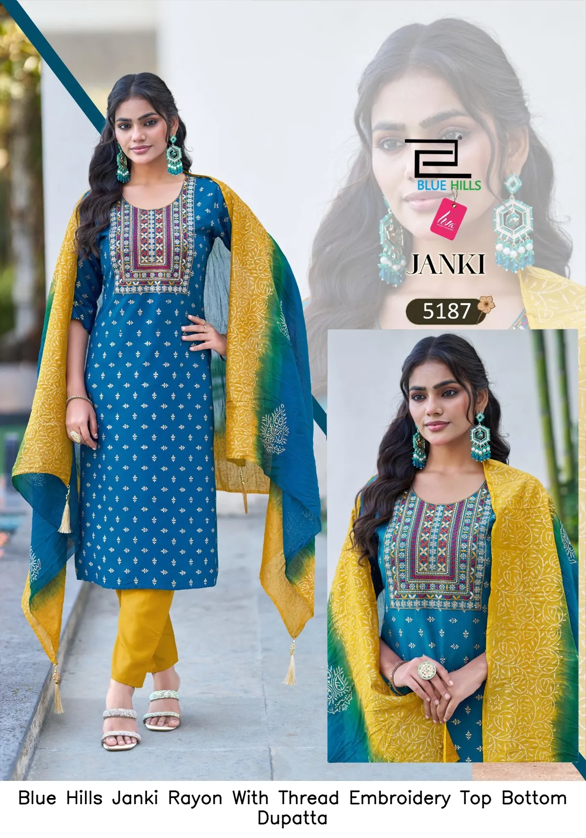 Blue Hills Janki Rayon With Thread Embroidery Top Bottom Dupatta