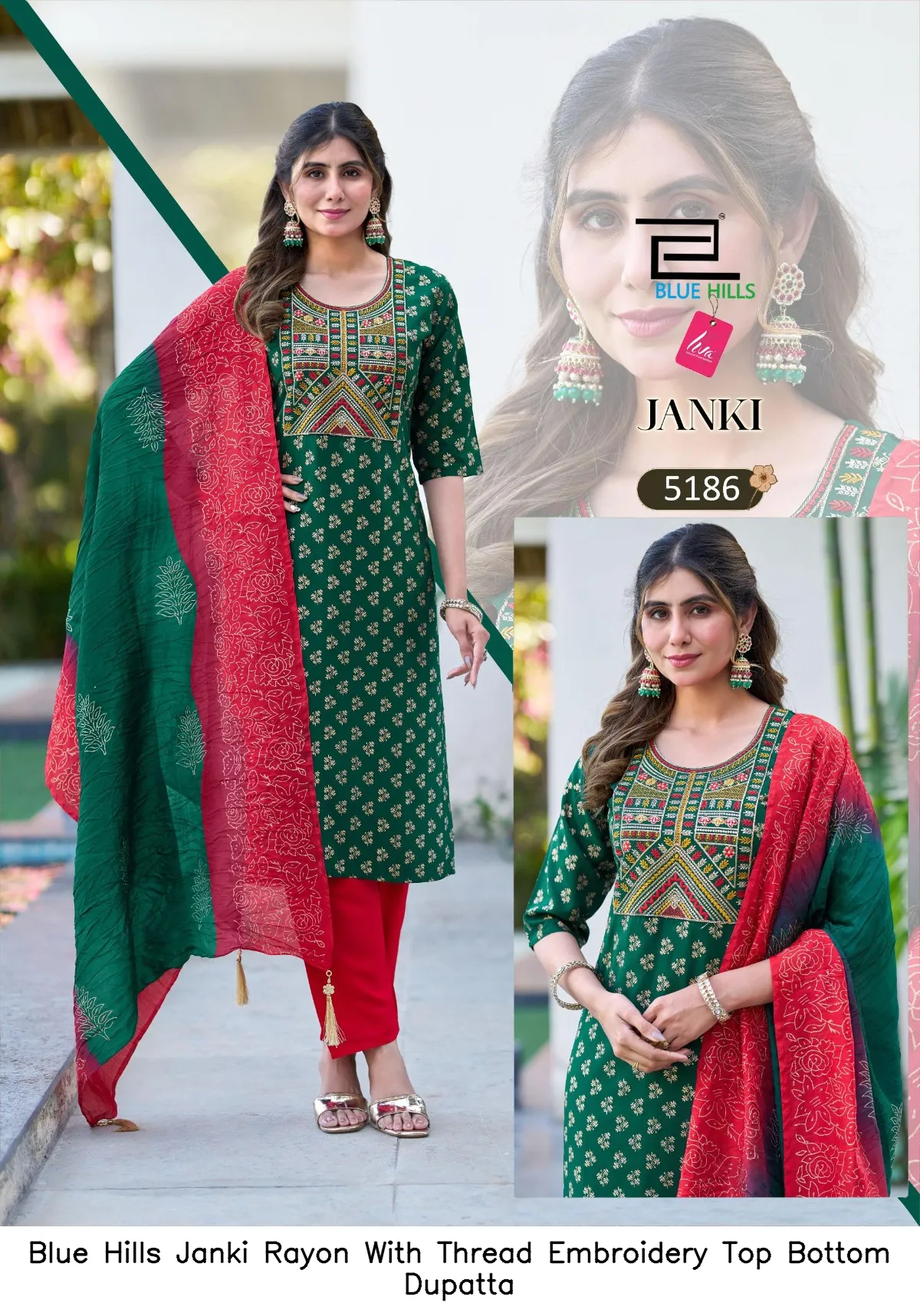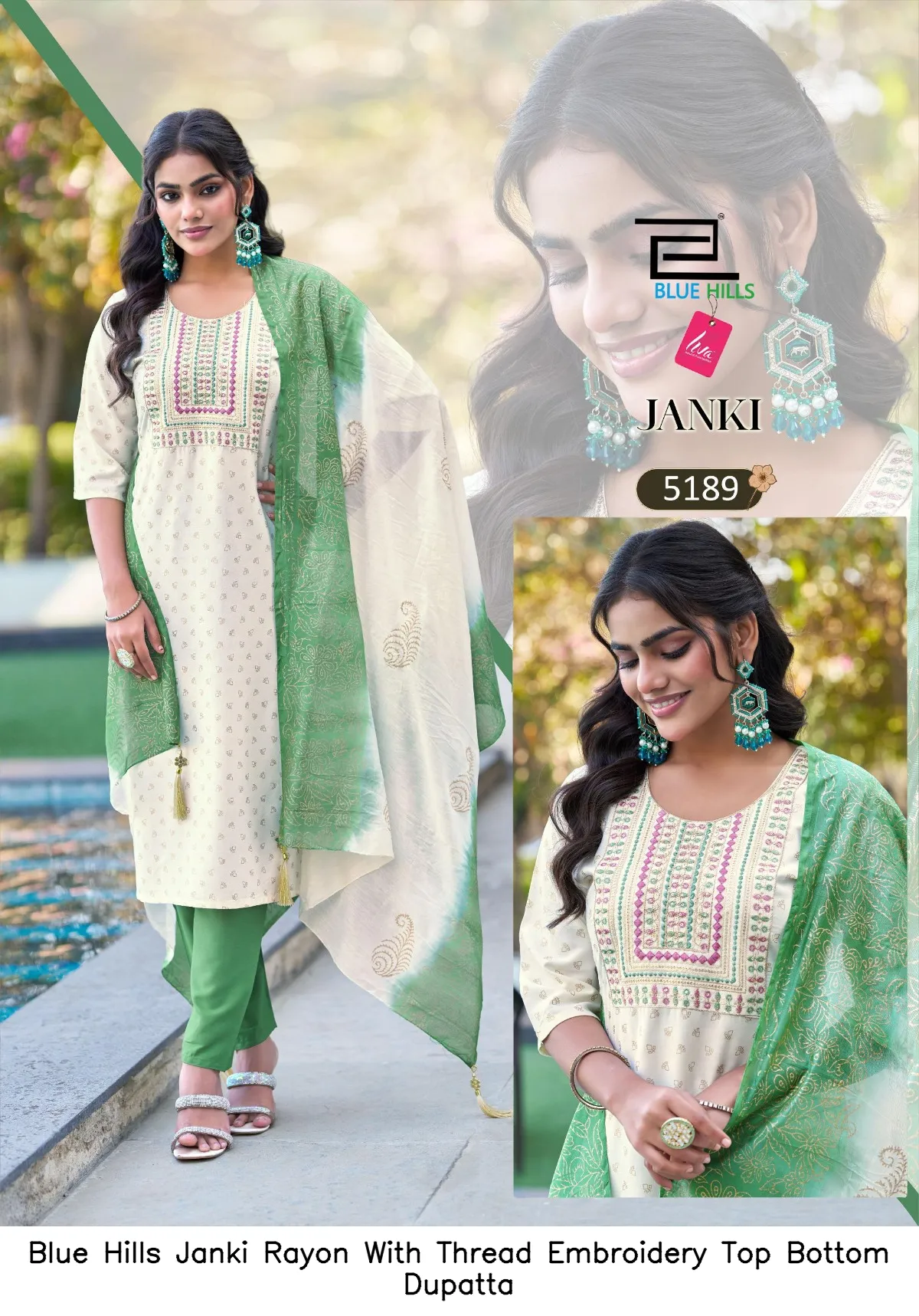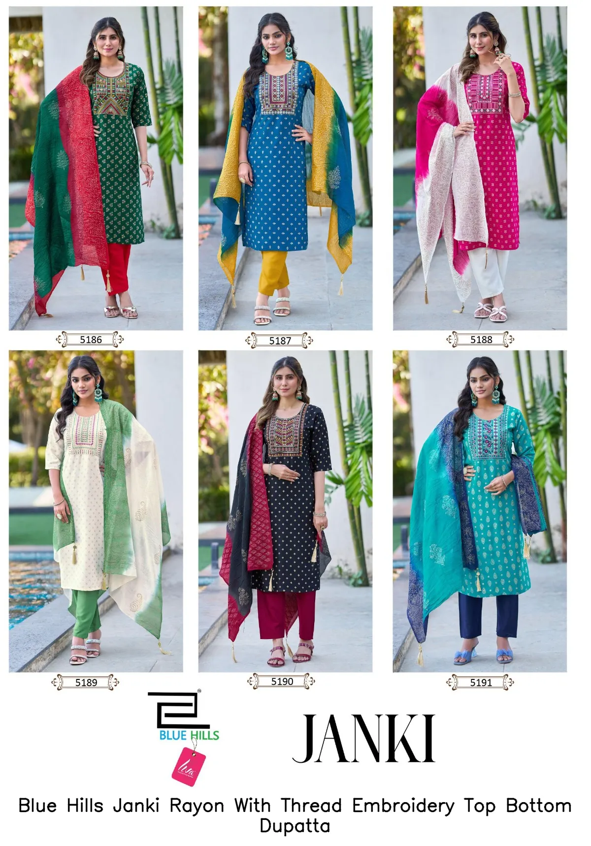 Blue Hills Janki Rayon With Thread Embroidery Top Bottom Dupatta