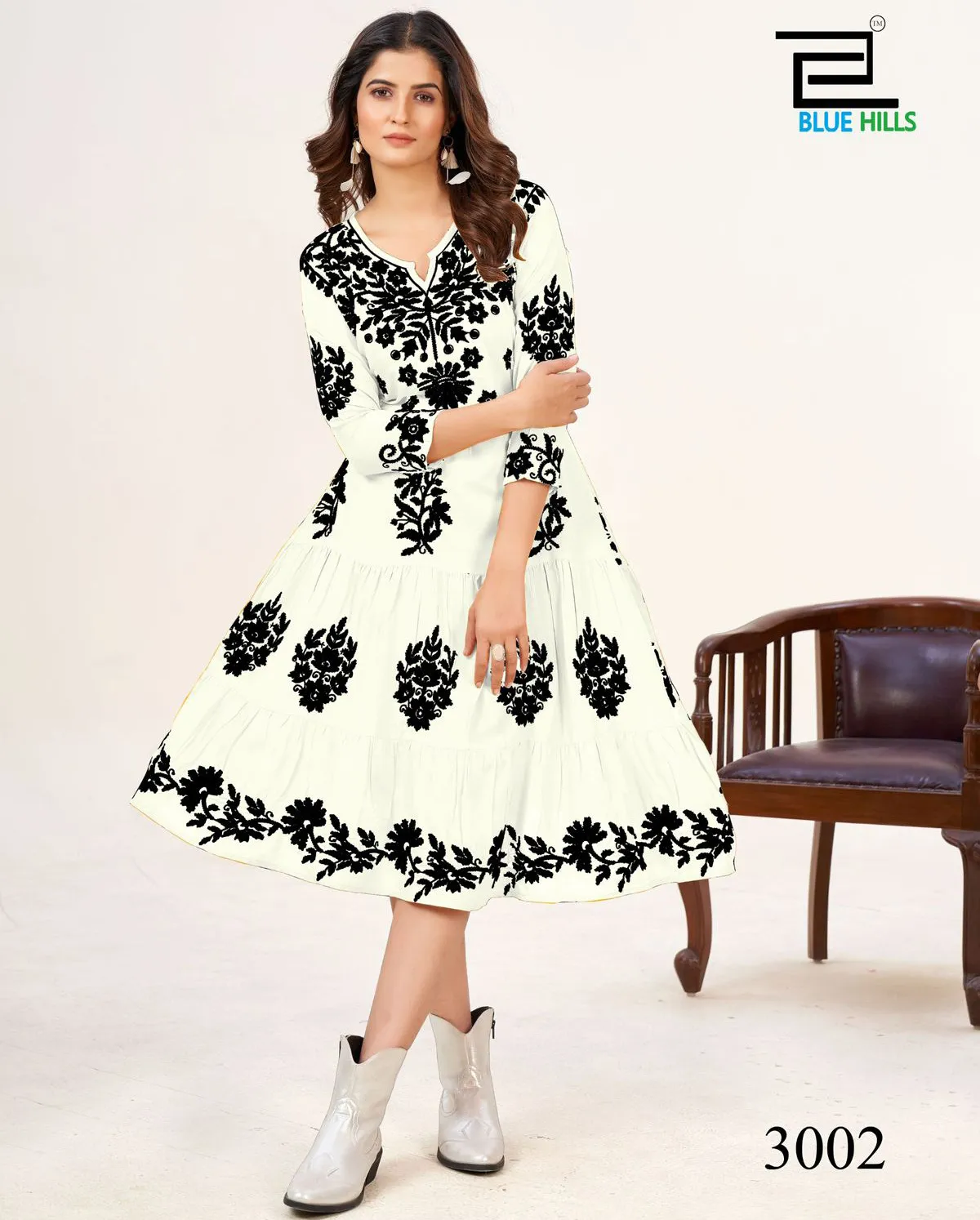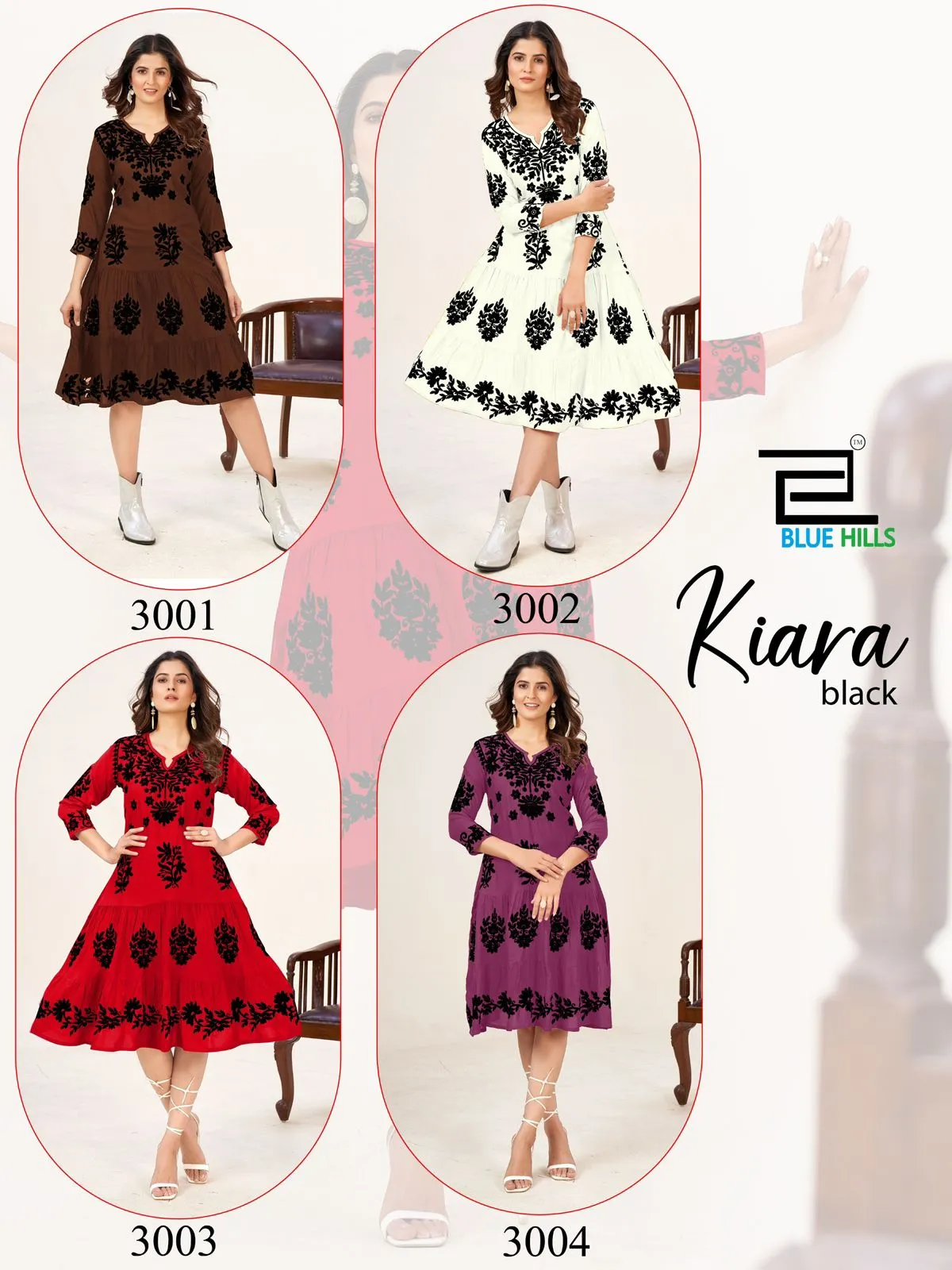 Blue Hills Kiara Black Rayon Lucknowi Work Wholesale Kurti Collection
