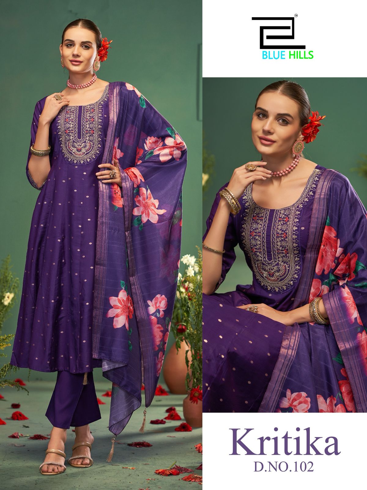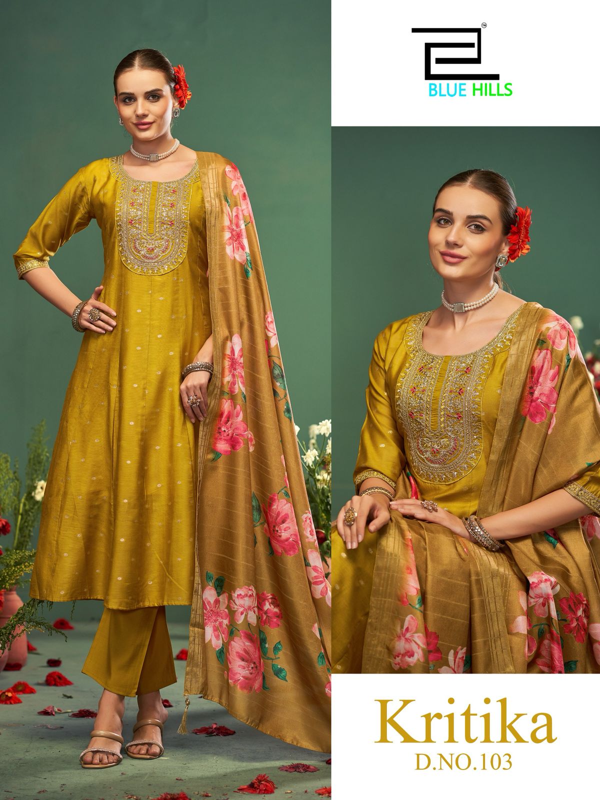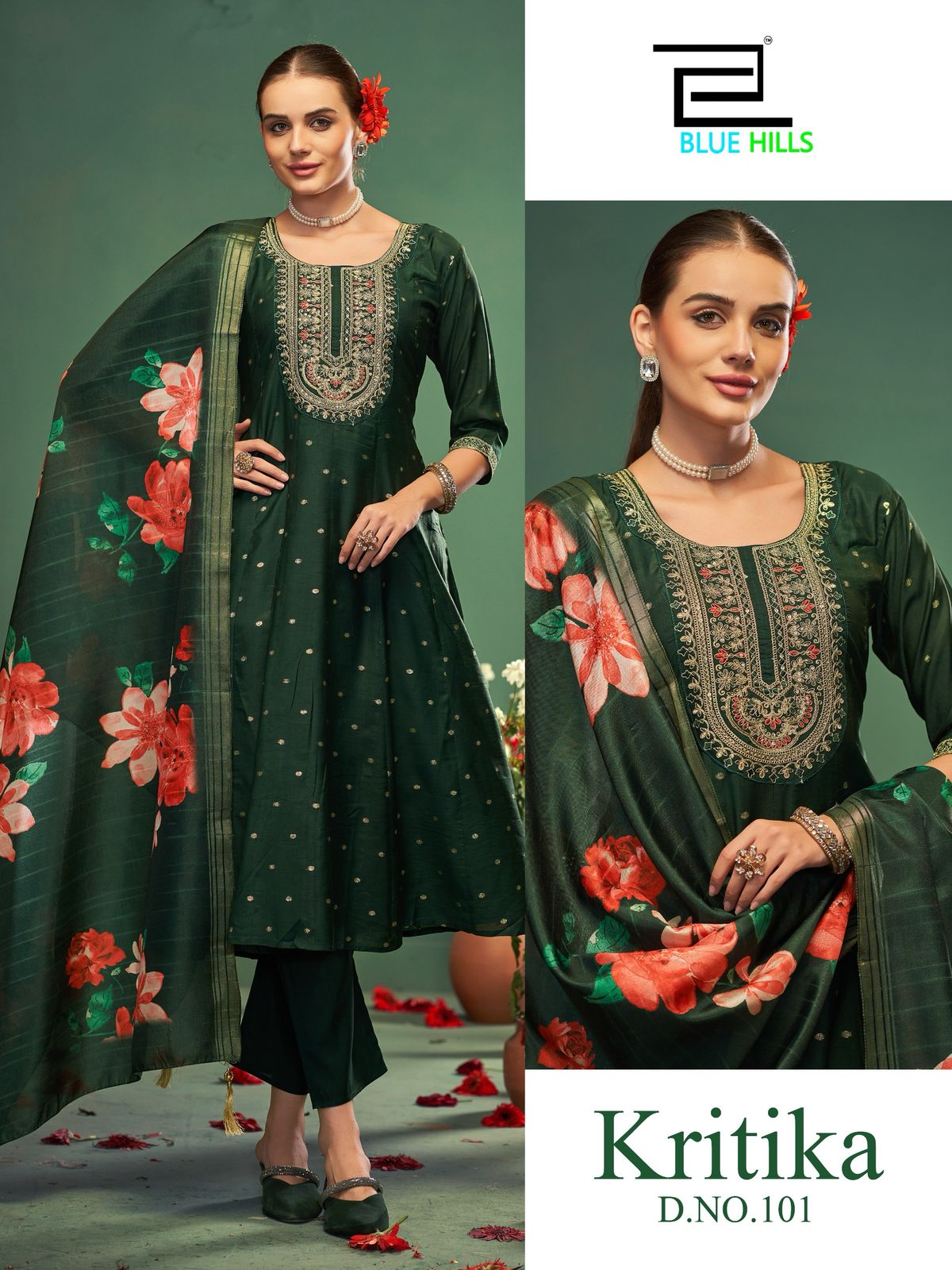 Blue Hills Kritika Chanderi Buti Jari Weaving Wholesale Anarkali Suit Catalog.