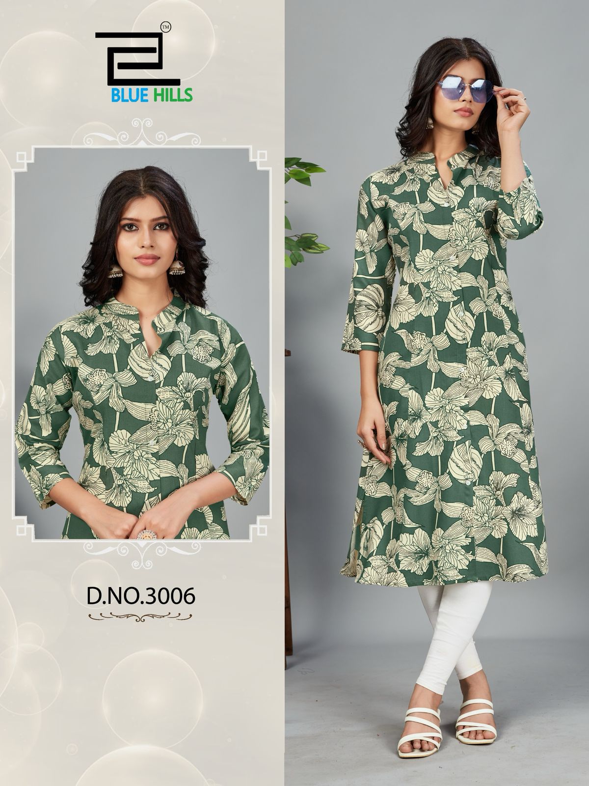 Blue Hills Maher Vol 3 Printed Rayon Readymade Kurti Wholesale Catalog.