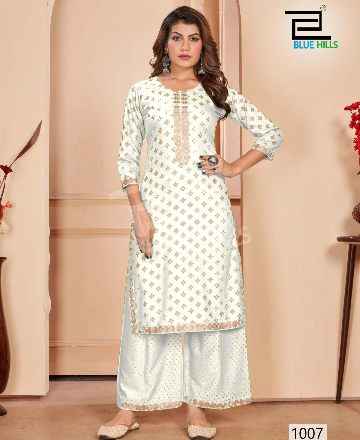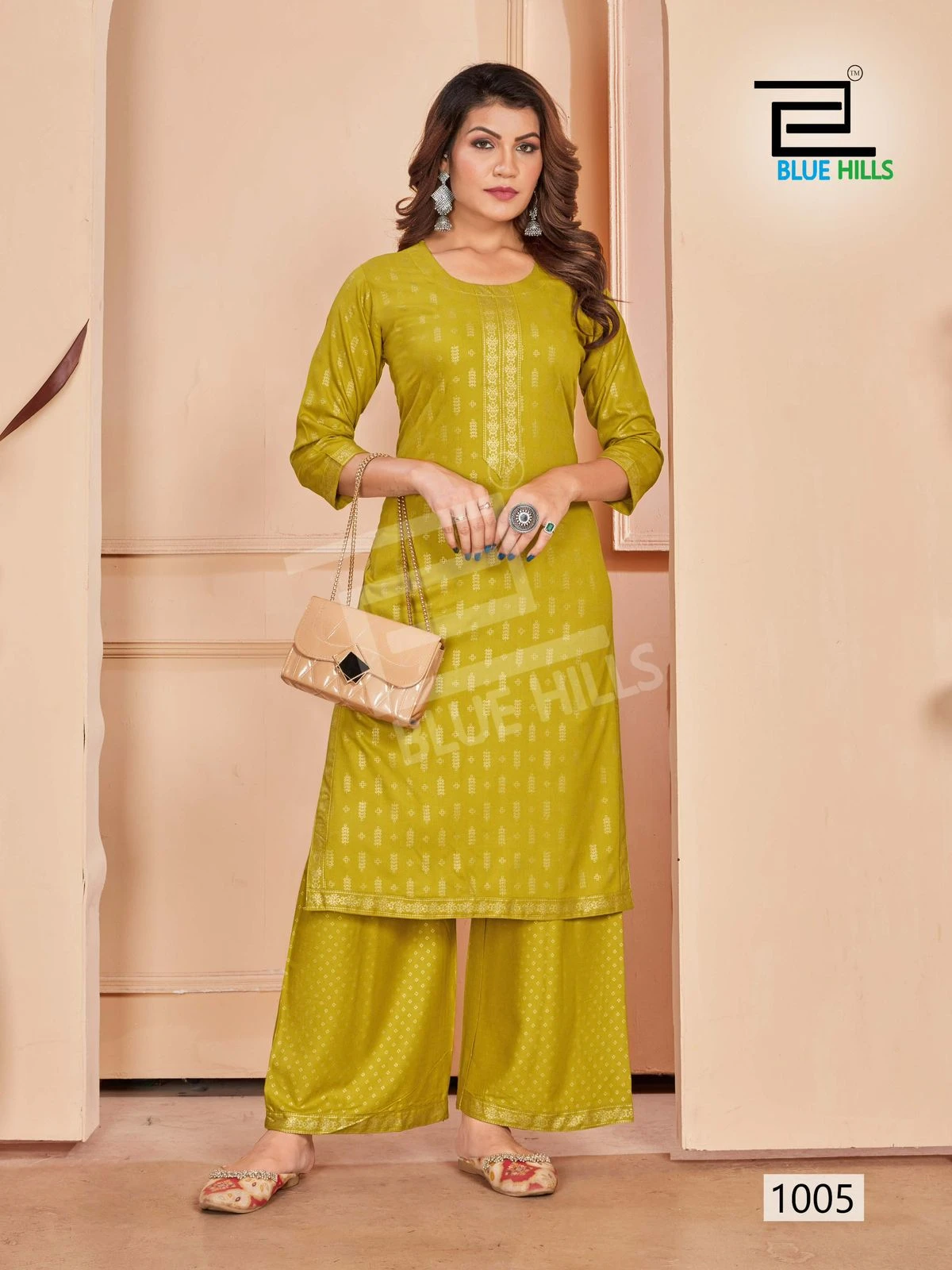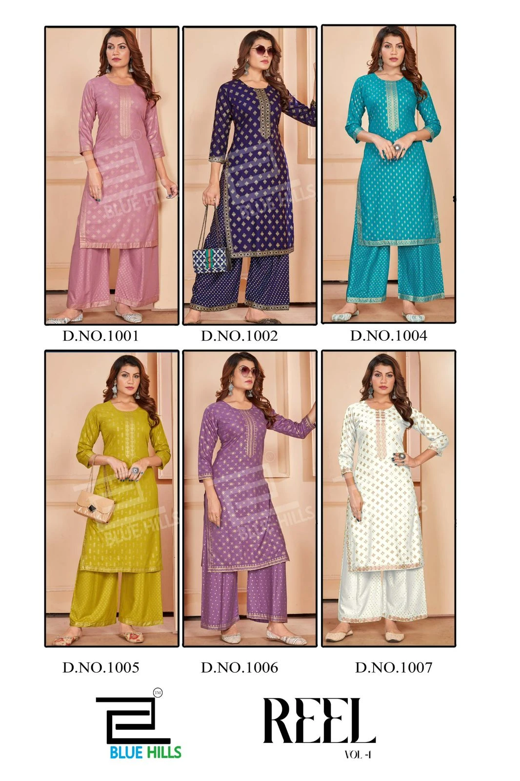 Blue Hills Reel Rayon 14Kg Wholesale Kurti with Palazzo Catalog