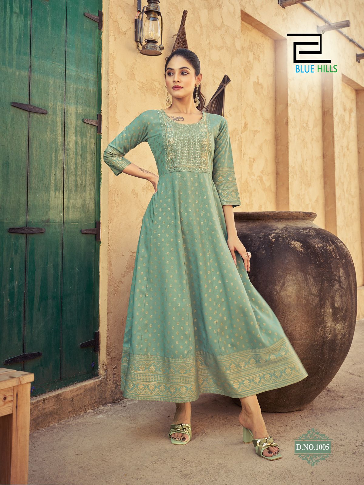 Rayon 14 Kg Foil Print Anarkali Gown With Neck Embroidery |