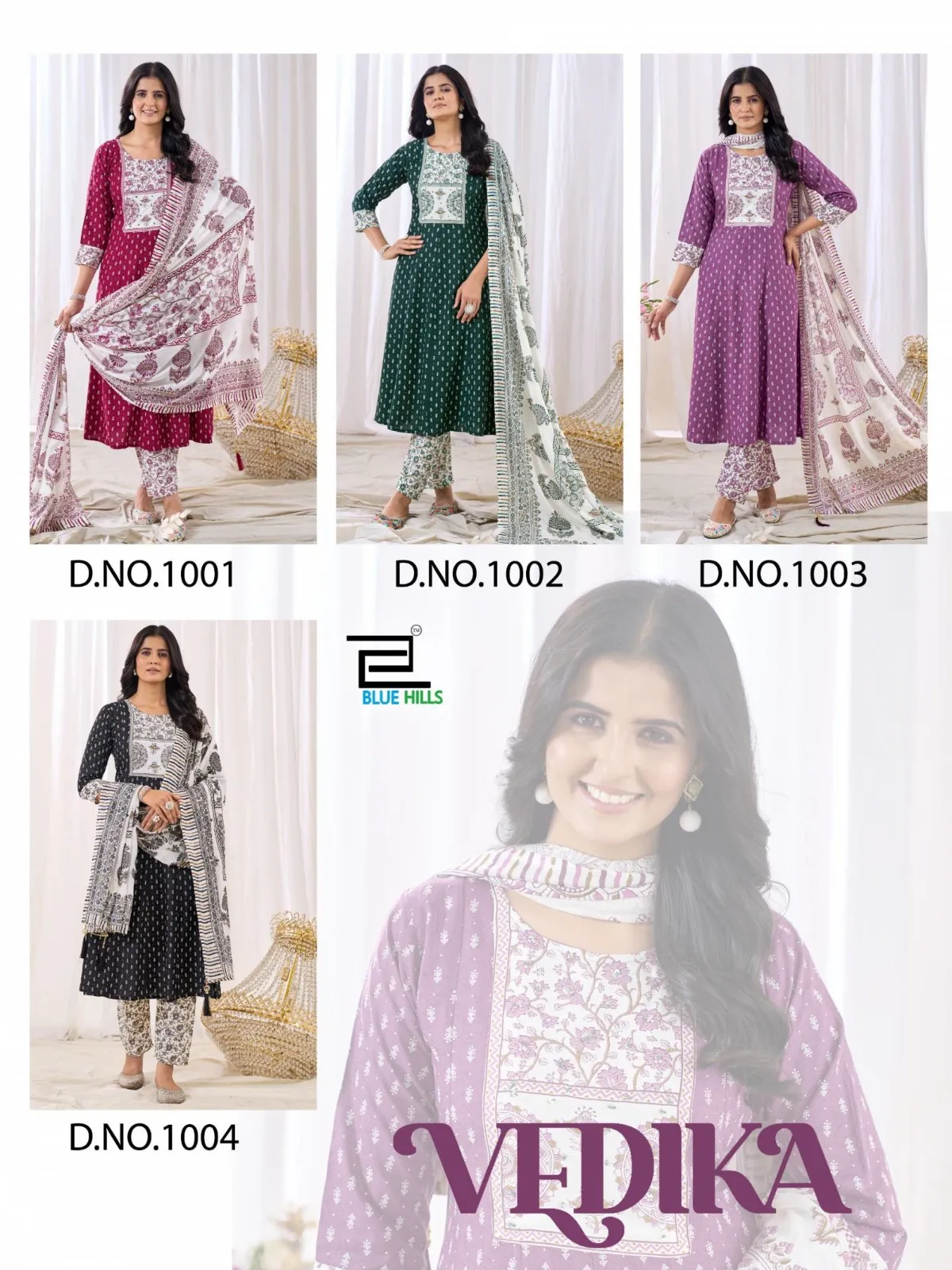 Blue Hills Vedika Rayon Neck Handwork Kurti Pant And Dupatta Set