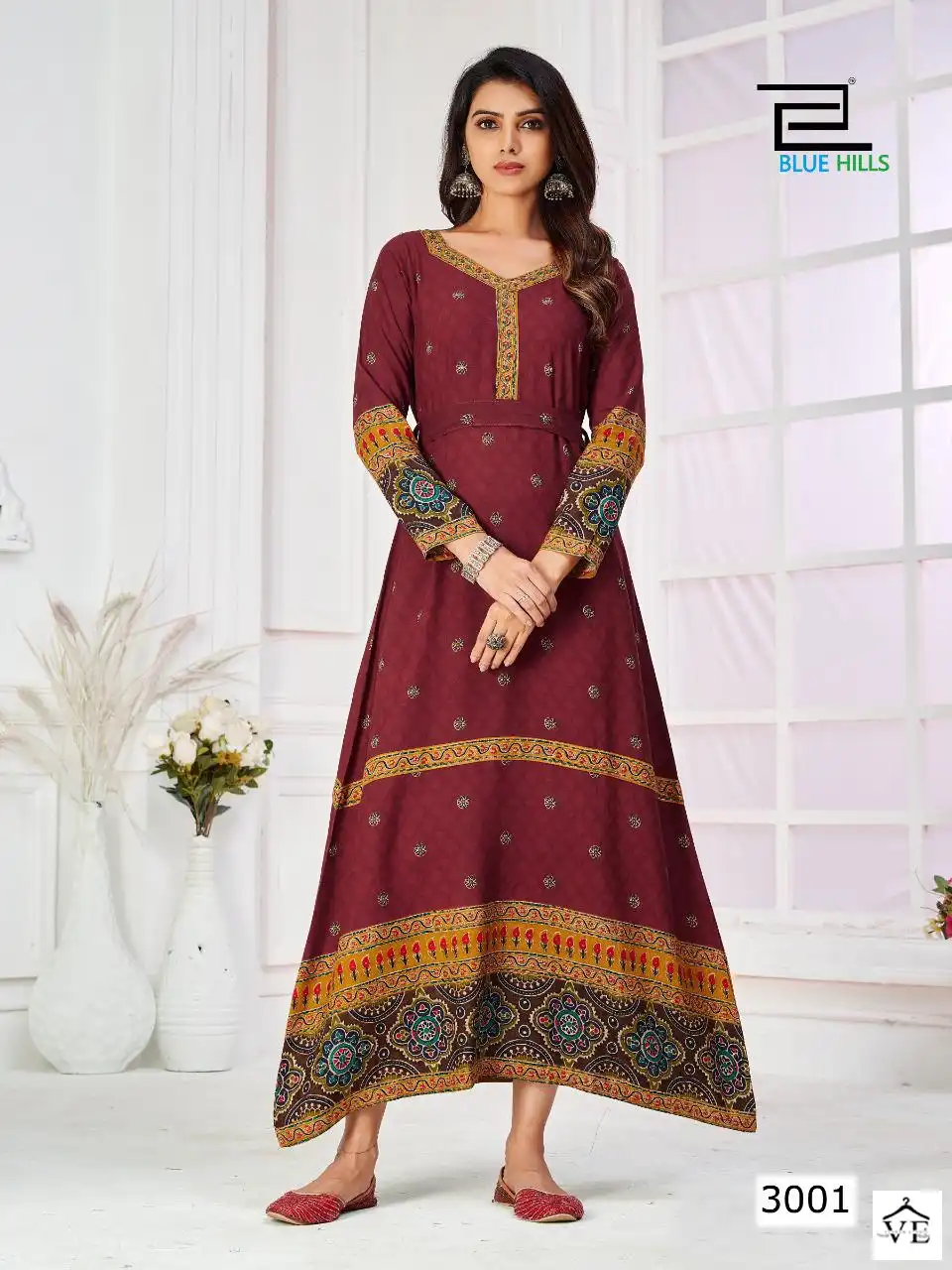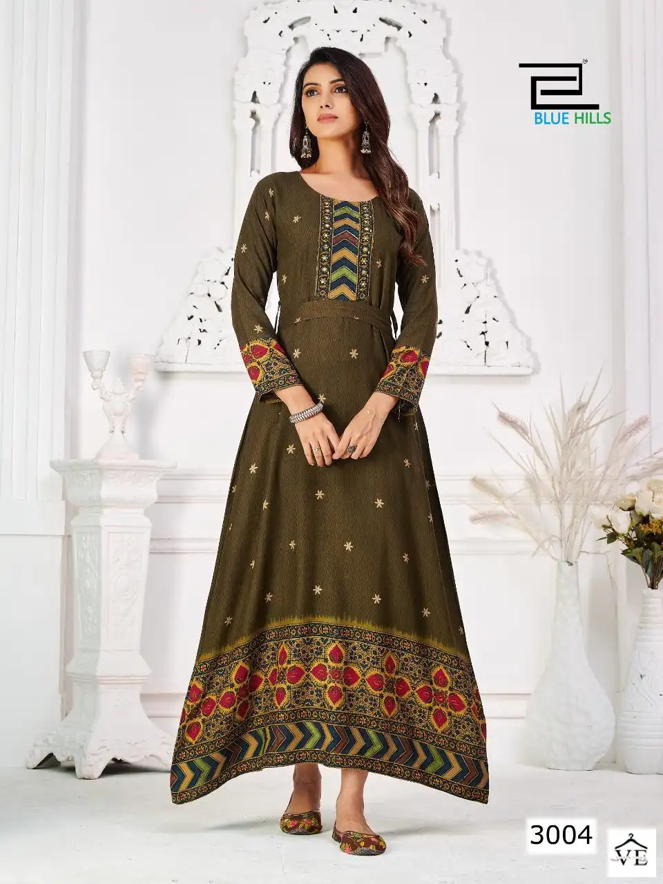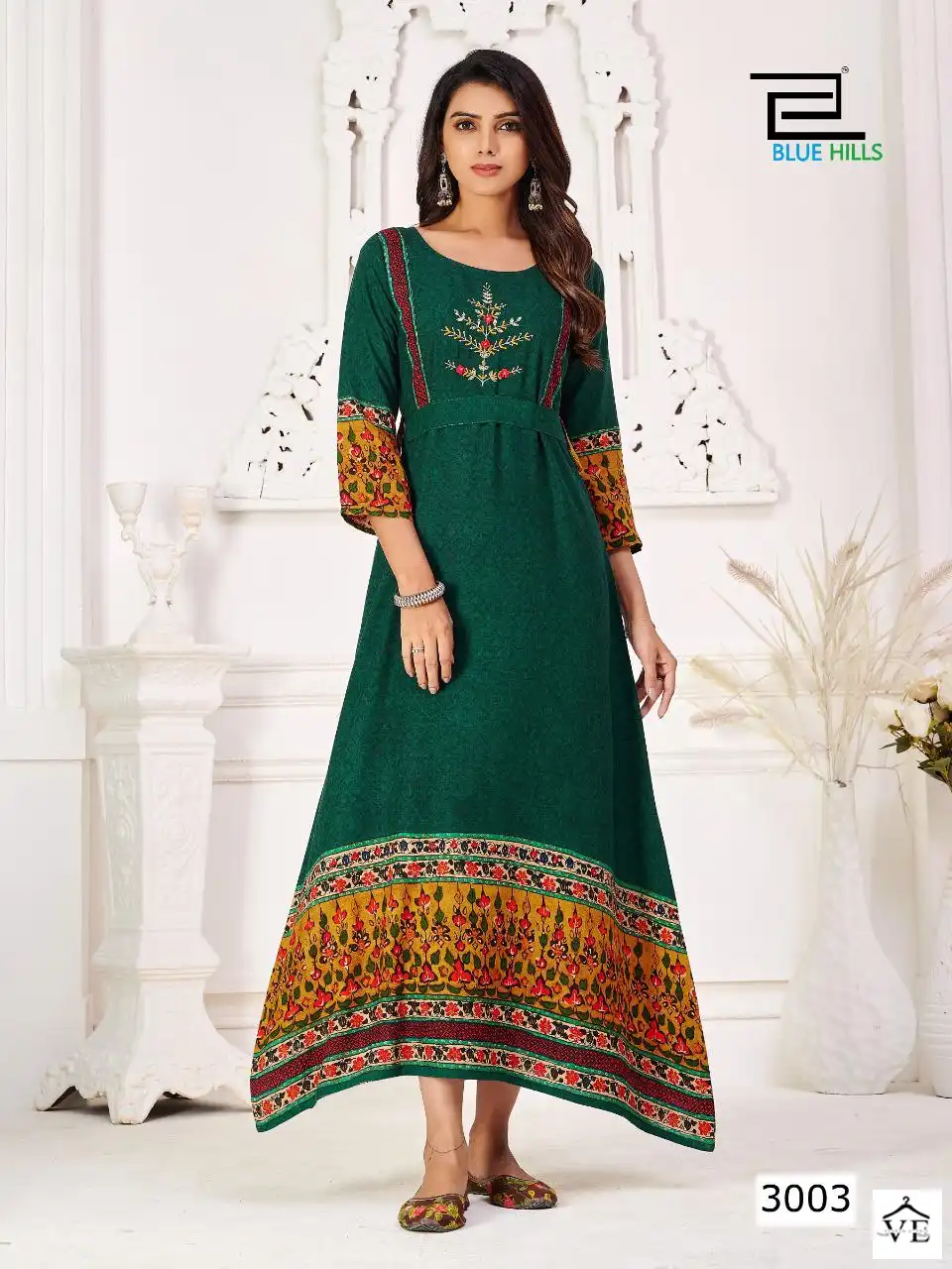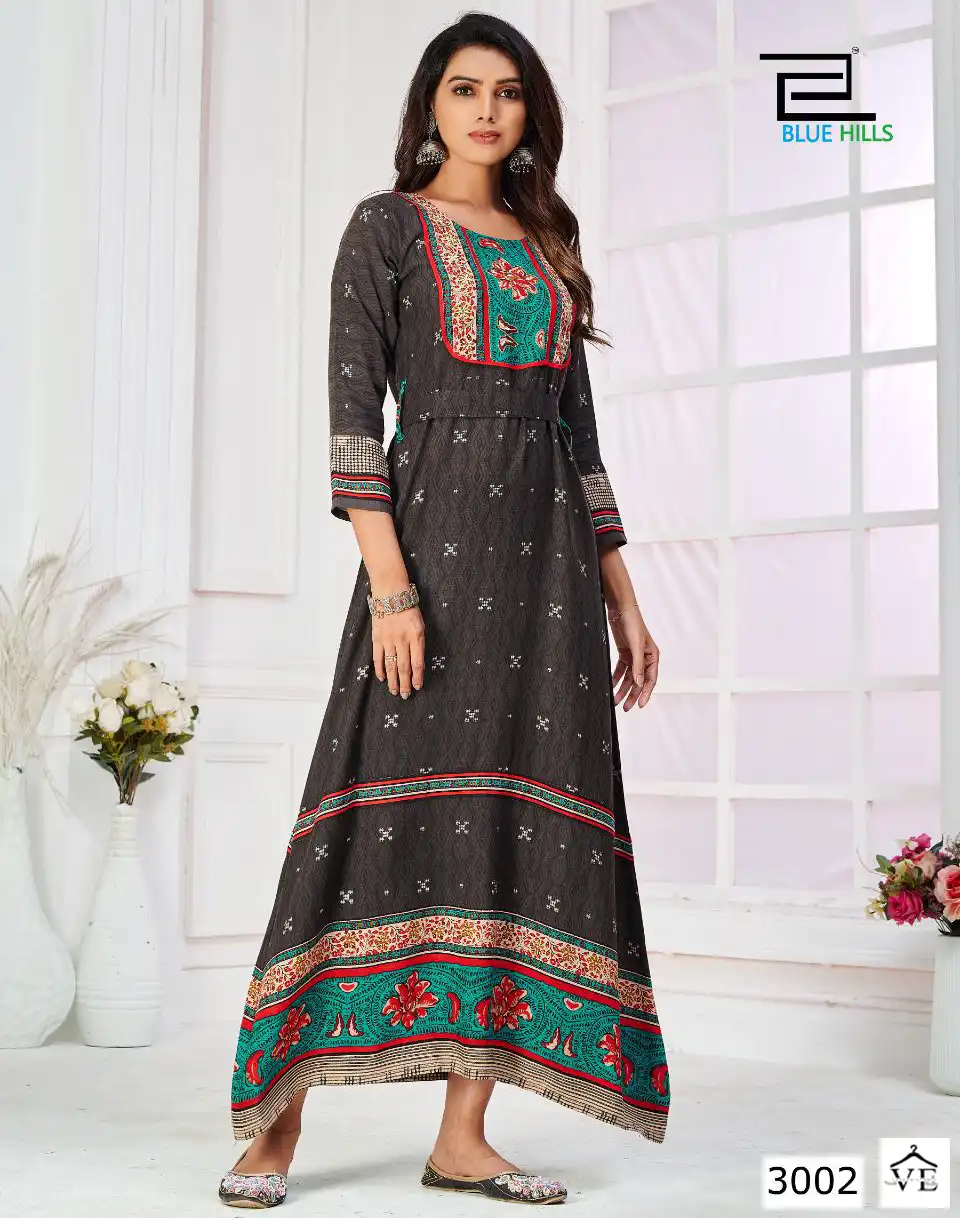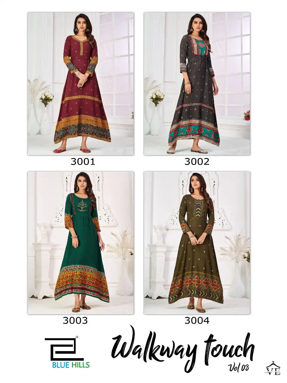 Blue Hills Walkway Touch Vol 3 Rayon 14Kg Wholesale Long Gown Catalog 4 Pcs. We deal in Kurtis, Sarees, Dresses Materials, Leggings, and Designer Salwar Kameez.