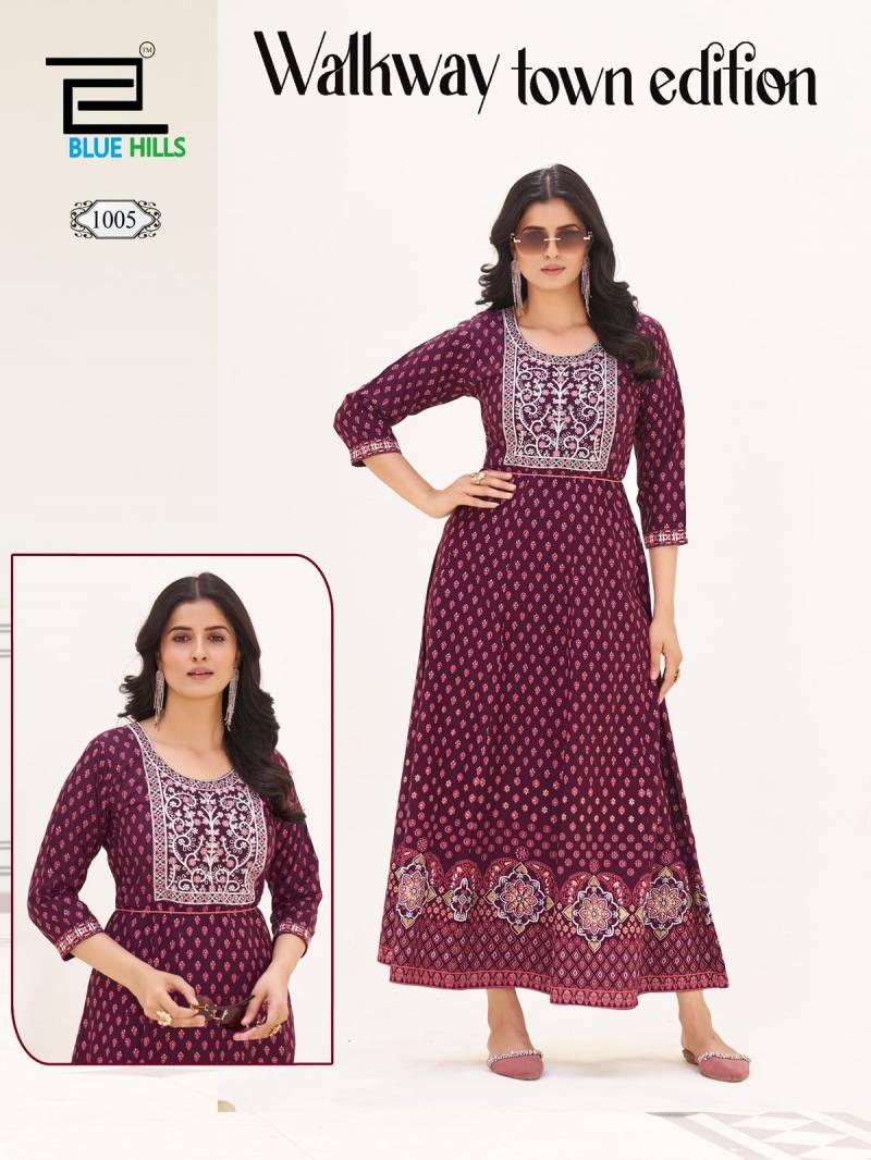 Blue Hills Walkway Town Edition Rayon Anarkali Kurti Collection.