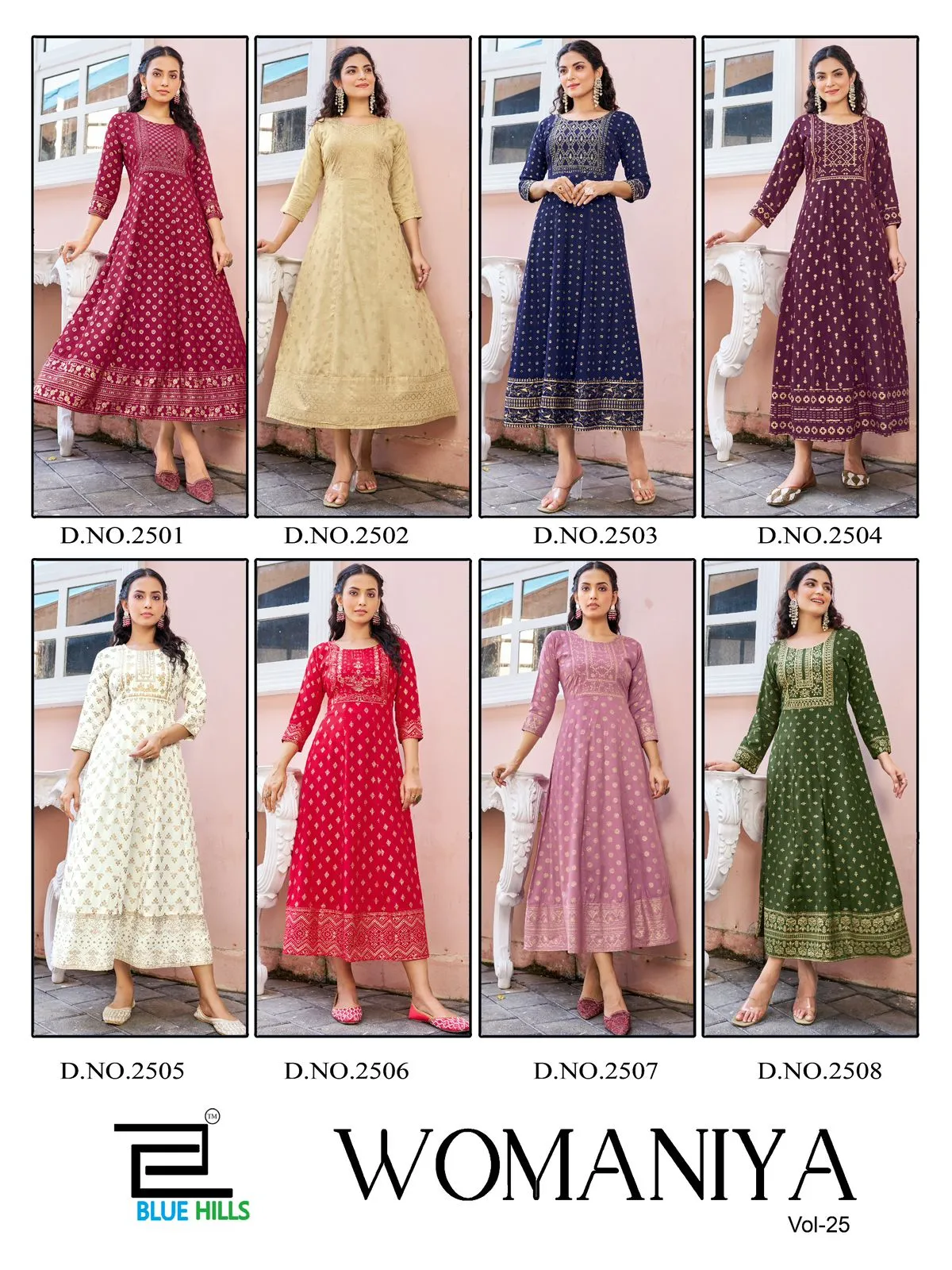 Blue Hills Womaniya Vol 25 Rayon Foil Printed Wholesale Anarkali Kurti Collection