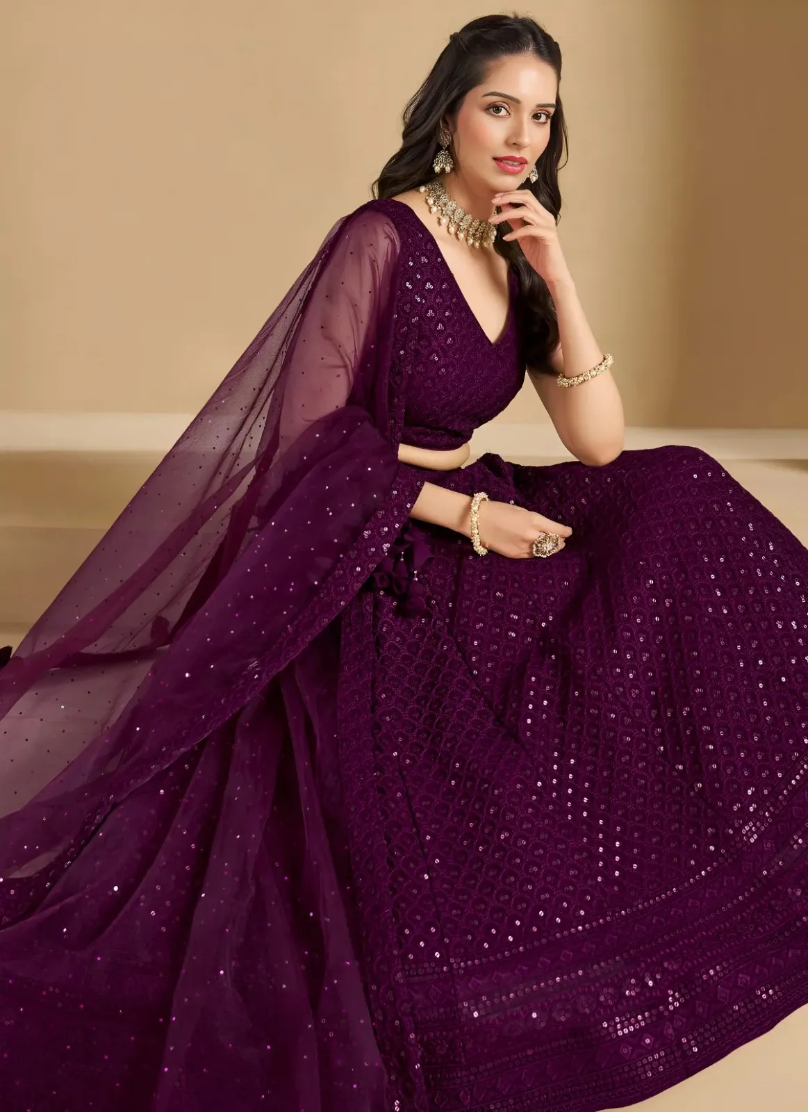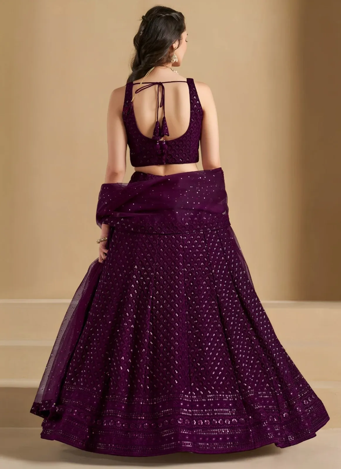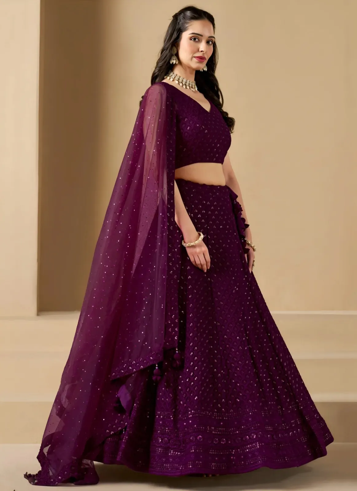 Bridesmaid Wine Georgette Lehenga Choli Set
