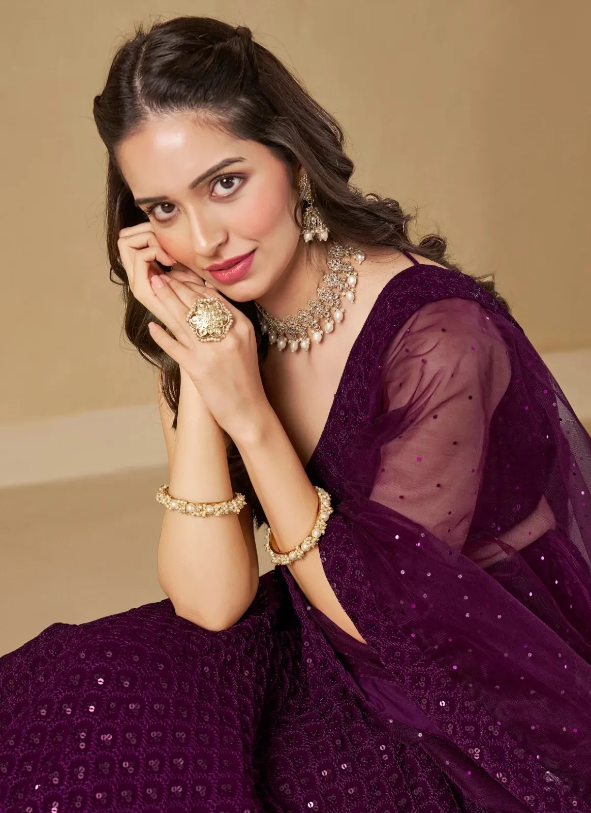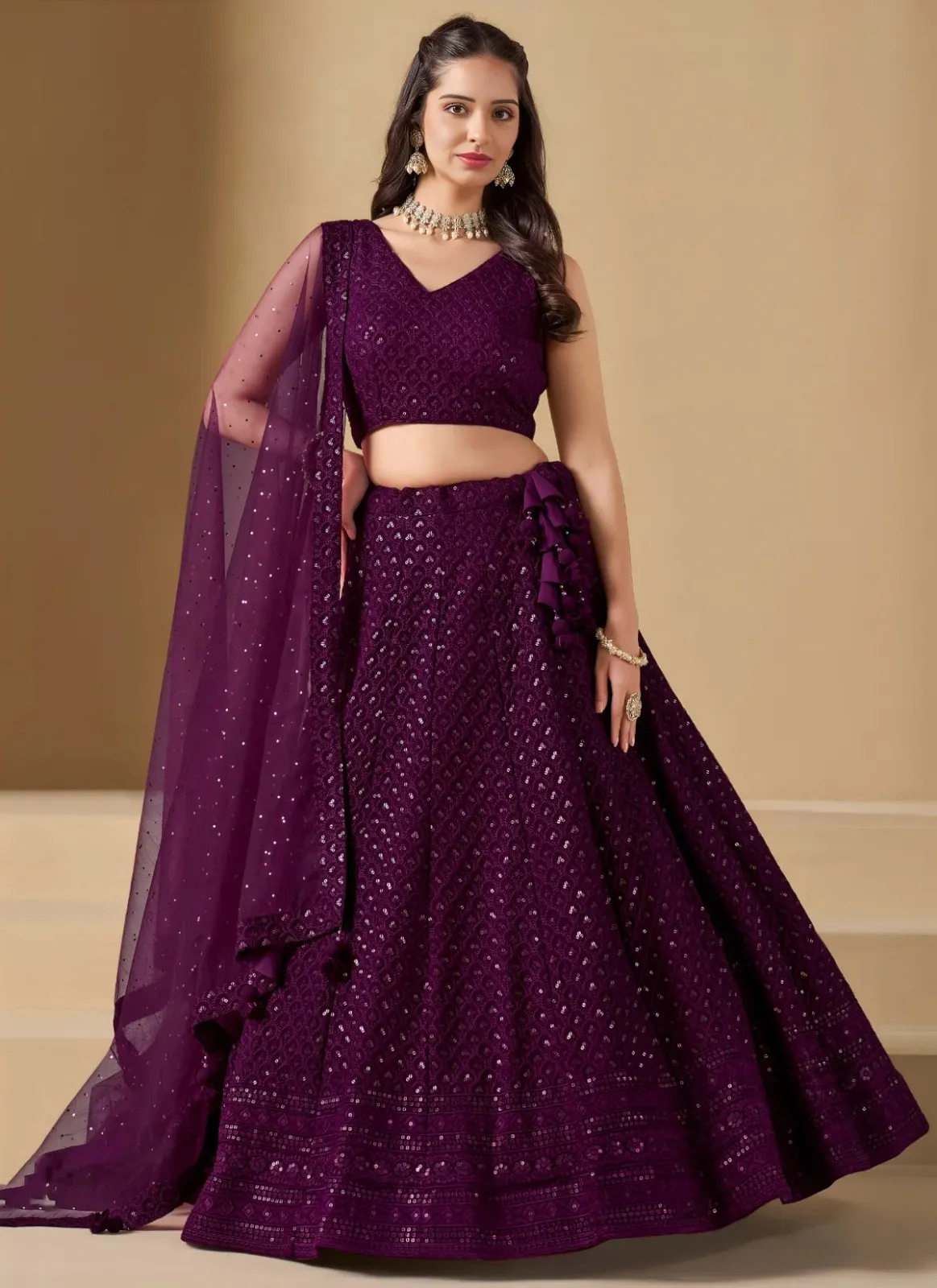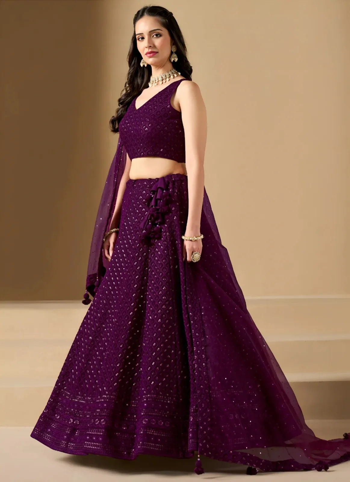Bridesmaid Wine Georgette Lehenga Choli Set