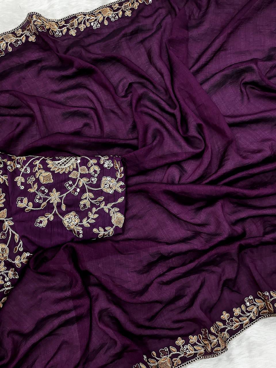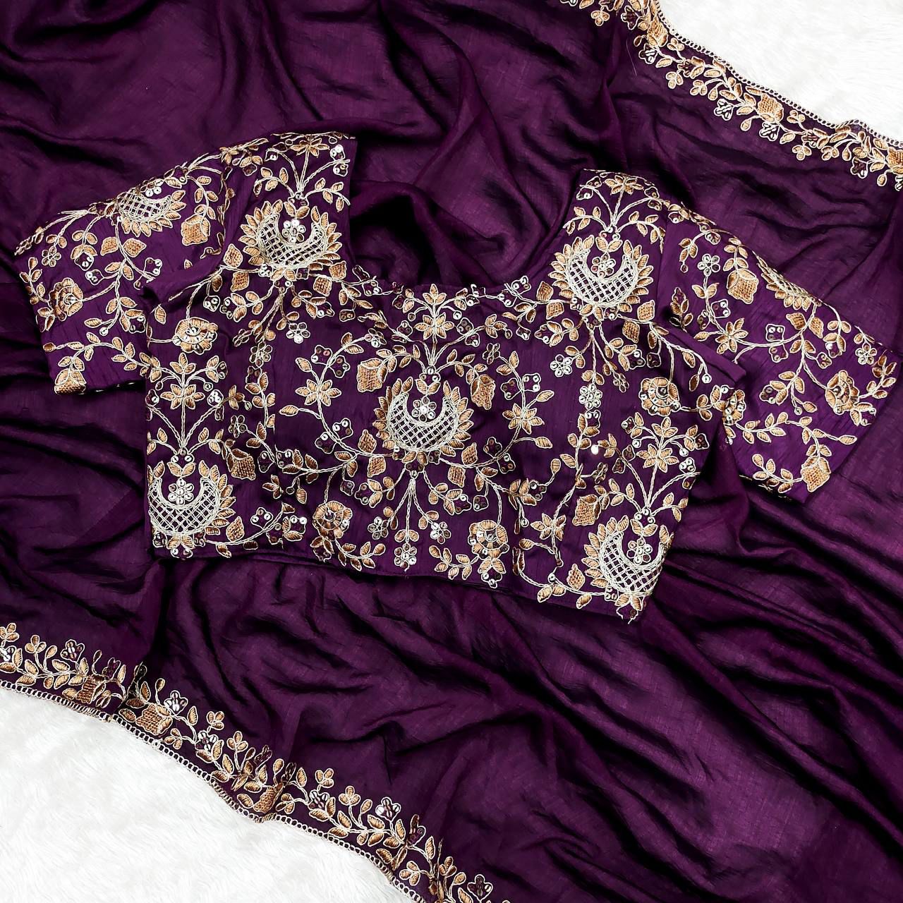 | Saree | Pure Two Tone Vichitra Silk Heavy Embroidery Coding & Sequins Work With Fancy Cutwork Border |