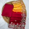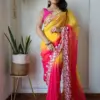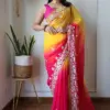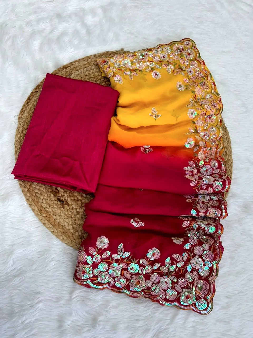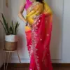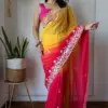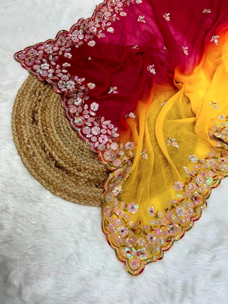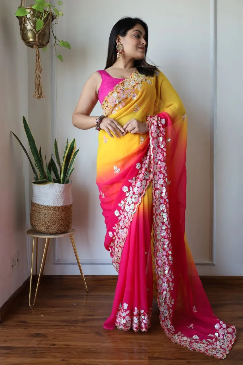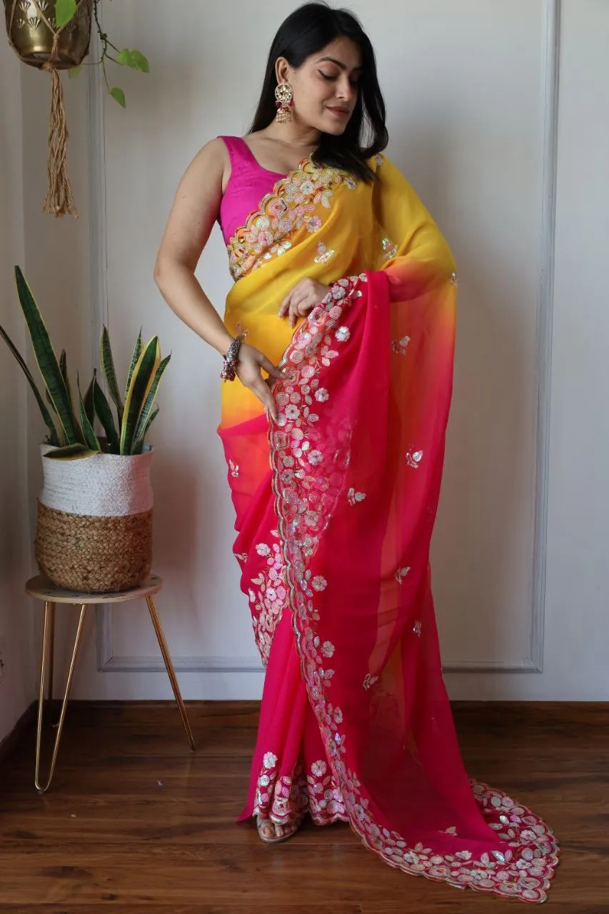 | Saree | Fox Georgette Pink with Yellow colour Shaded Effect with Designer Embroidered Work of Sequence & Thread work |