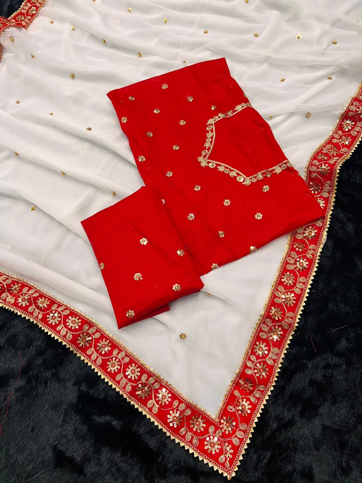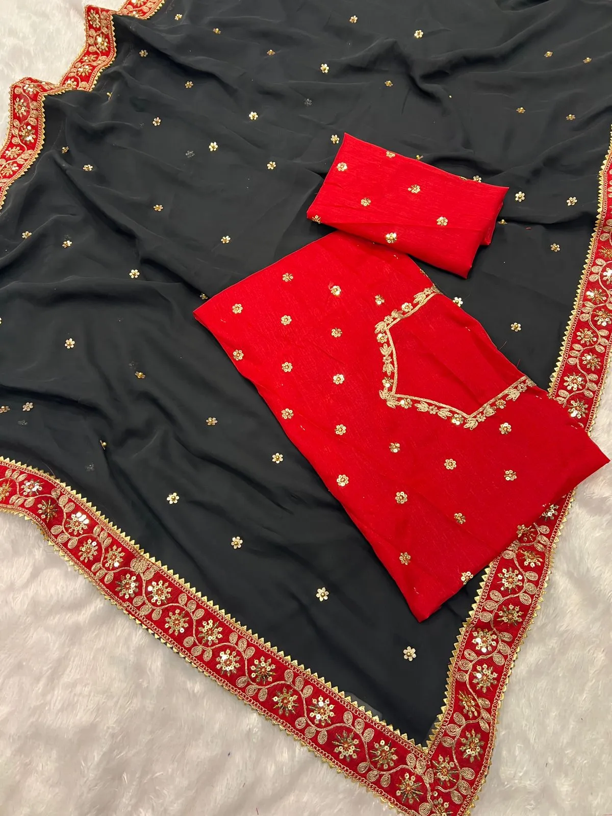| Saree | Heavy Georgette Fancy Dori Thread & Sequence with Handcrafted Butti A Moti Work 5.50 Mtr |