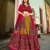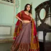 Lehenga Tussar Silk Lehenga With Bandhani Peacock With Foil Print And Micro Cotton Inner