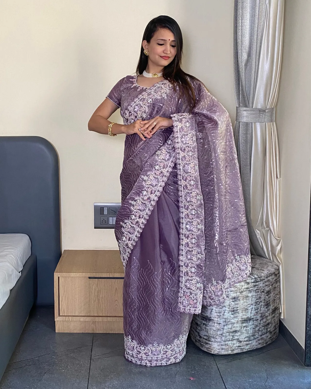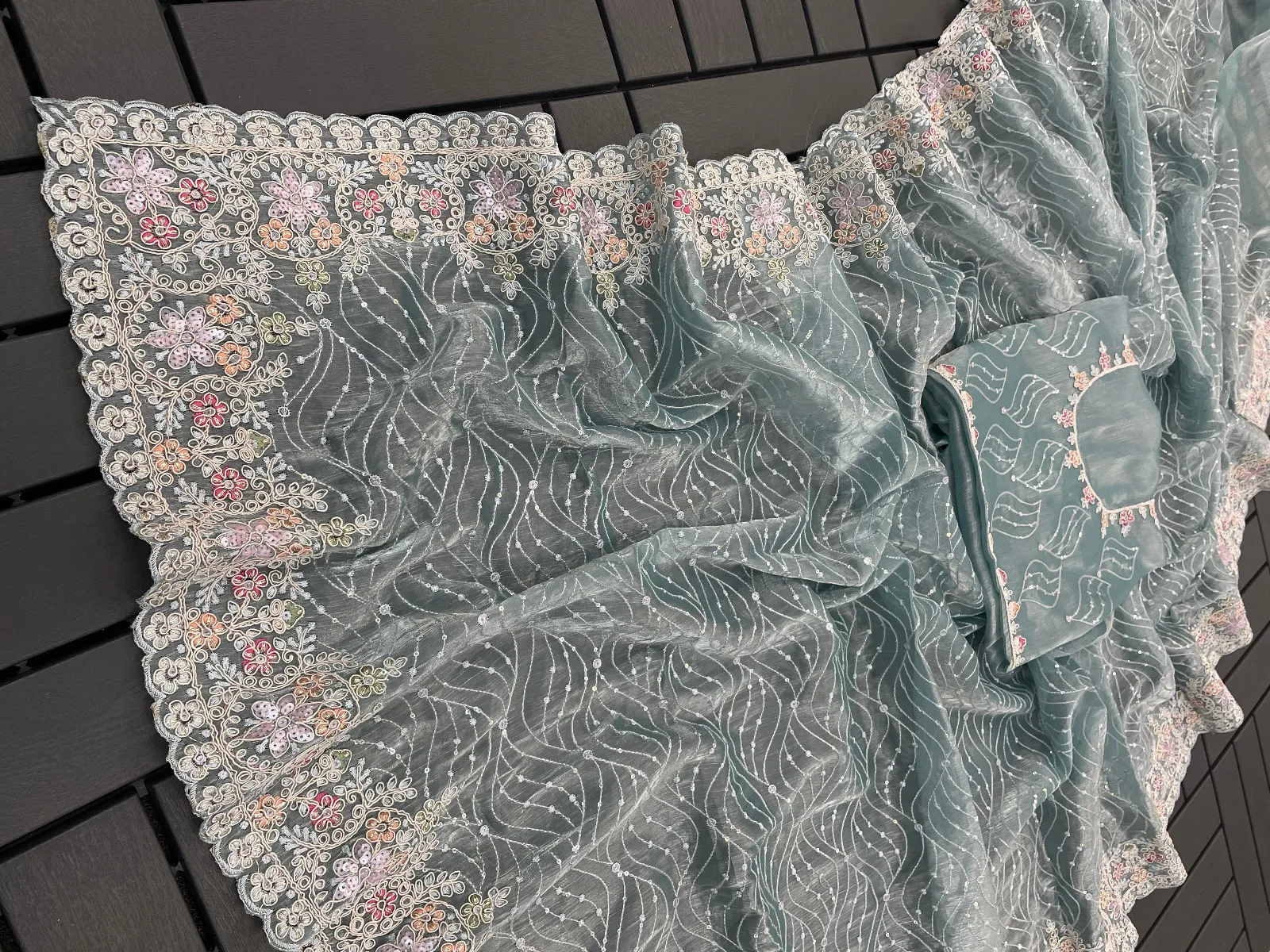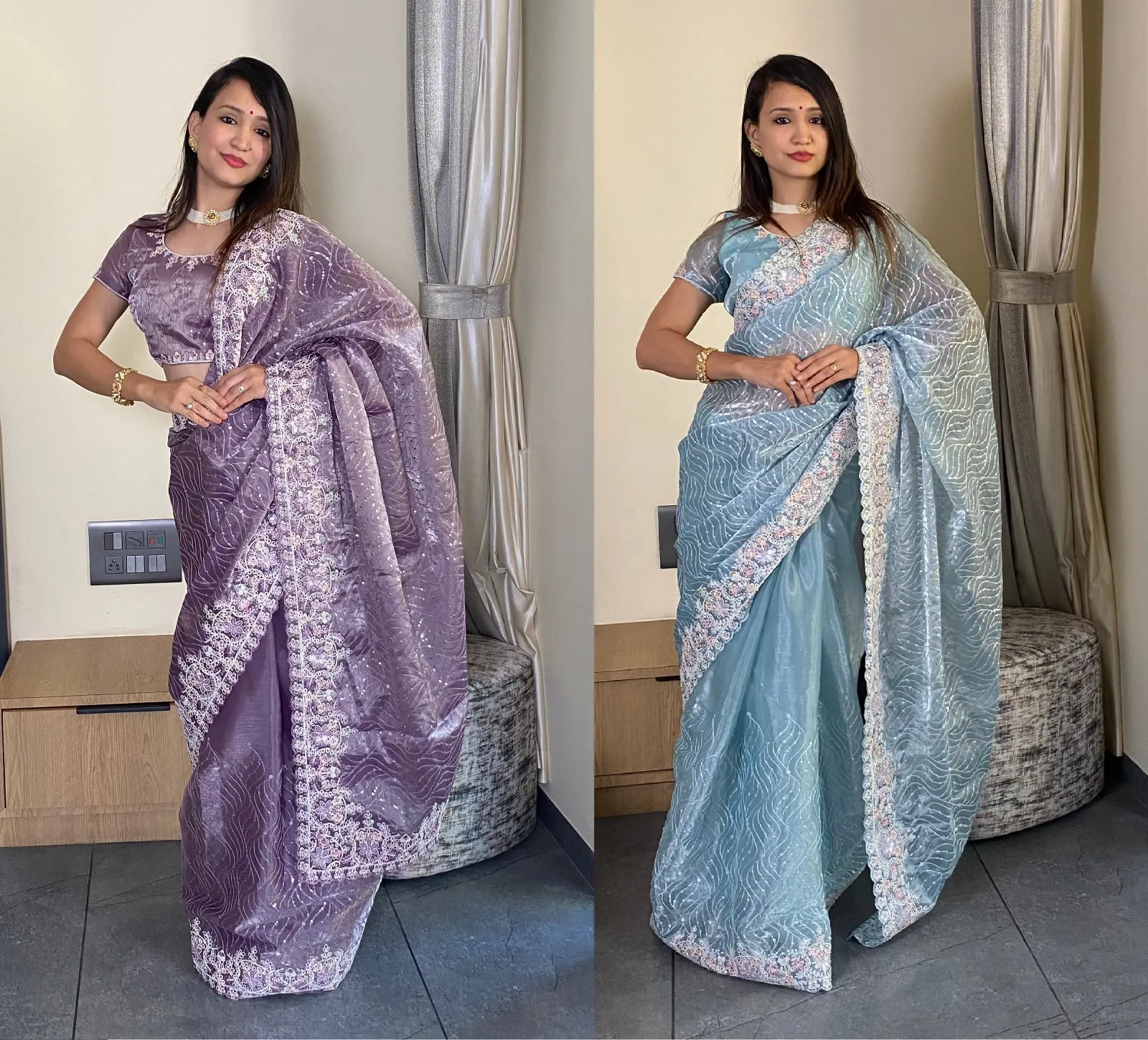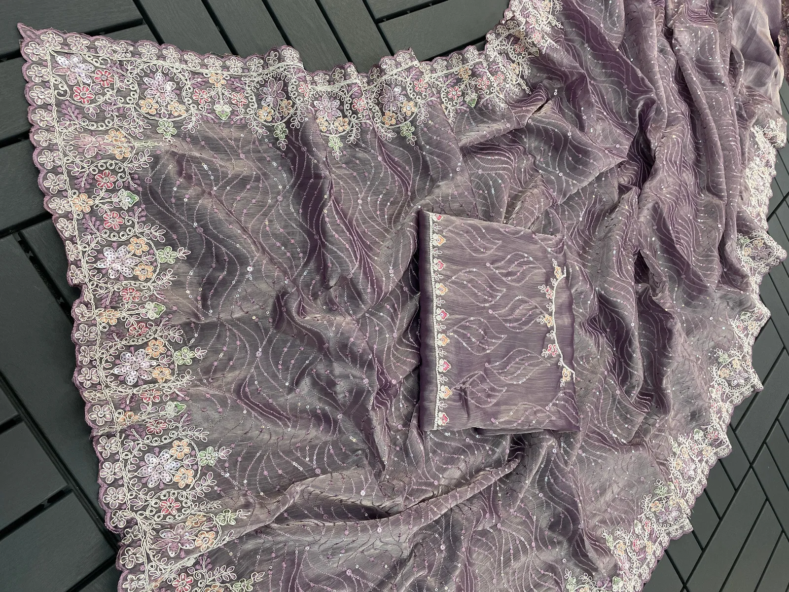 | Sarees | Premium Barbari Silk Heavy Embroidery Thread Zari with Coding & 3mm + 5mm Sequins Saree Work |