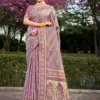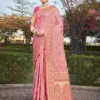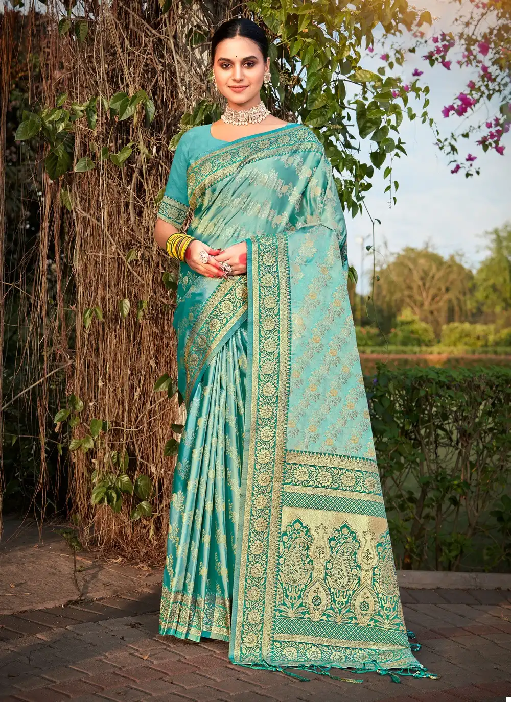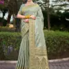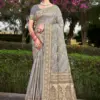 - The saree is crafted from Stain Silk fabric, known for its smooth texture and luxurious appearance.