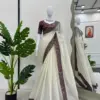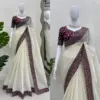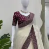 Shop this stunning Crunchy White Silk Designer Saree with Thread & Sequence embroidery.