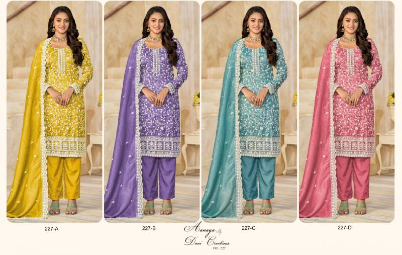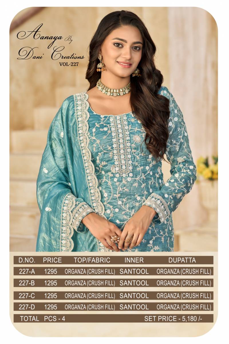 Dani Creation Aanaya Vol 227 Wholesale Organza Salwar Suit Collection.