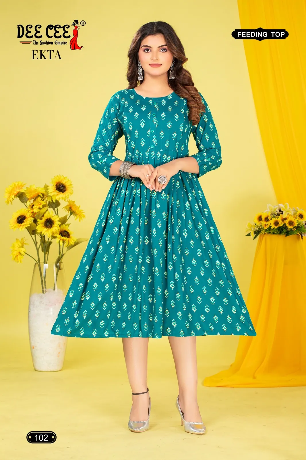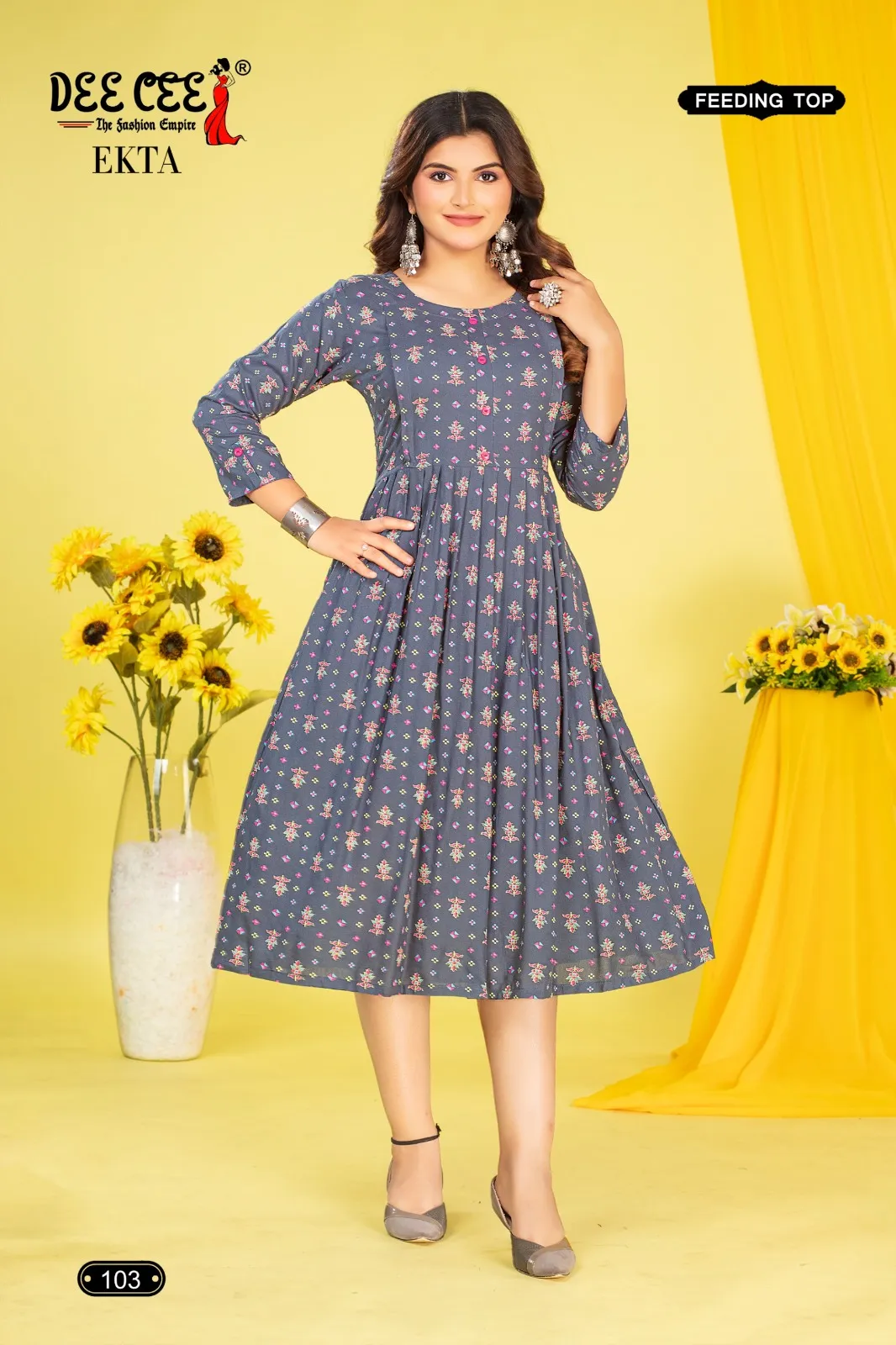 Deecee Ekta Rayon Print Wholesale Kurtis Collection