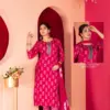 Top Capsule Print Straight Kurti with Computer Embroidery Border with Lace Regular 3/4 Sleeve