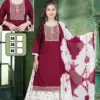 | Top | Rayon Dobby Straight Long Kurti with Computer Embroidery Yock 3/4 Sleeve with Patti. Computer Embroidery Border On Daman |