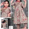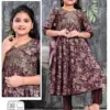 Modal Chanderi Print Lia Cut Flared Kurti With Computer Embroidery Choli |