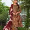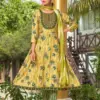 Top Heavy Chanderi Printed – Kali Style Flared Long Kurti with Matching Fabric Computer Embroidered Yoke & Lace Detailing