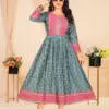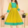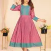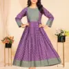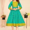 Top | Chanderi Plain Flared Screen Print Long Kurti with Screen Print Border Yock with Lace Screen Print Border On 3/4 Sleeve with Lace Screen Print Border On Daman Front Side Computer Embroidery Work On Choli Screen Print Border On 3/4 Sleeve and On Daman |