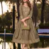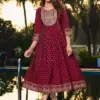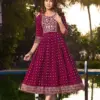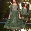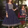 Heavy Chanderi Plain Screen Print Flared Long Kurti With Computer Sequence Embroidery York With Lace. Lace Detailing On 3/4 Sleeve |