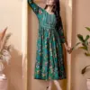 Top: Indulge in the opulence of our heavy chanderi print flared long kurti, meticulously crafted to offer both style and comfort. The flared silhouette adds a touch of grace, while the computer sequence embroidery along the yoke with dori detailing elevates the overall look, making it a statement piece in your collection. Available in sizes ranging from M to 4XL, ensuring a perfect fit for every body type.