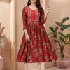 Top: Indulge in the opulence of our heavy chanderi print flared long kurti, meticulously crafted to offer both style and comfort. The flared silhouette adds a touch of grace, while the computer sequence embroidery along the yoke with dori detailing elevates the overall look, making it a statement piece in your collection. Available in sizes ranging from M to 4XL, ensuring a perfect fit for every body type.