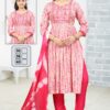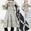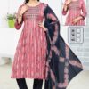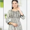 | Top | Rayon Dobby Naira Cut Kurti with Computer Embroidery Yock 3/4 Sleeve with Patti |