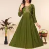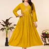 - Heavy Plain Rayon Fabric: Immerse yourself in the luxurious feel of heavy plain rayon, known for its softness and excellent draping. These long kurtis are designed for the modern woman who values both comfort and style in her ethnic wear.