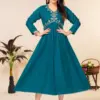 Heavy Plain Rayon Flared Long Alia Cut Kurti With Computer Embroidery |