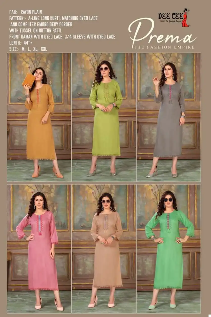 Deecee Prema Rayon Plain Wholesale Kurtis Catalog