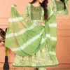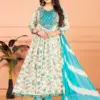 - Design (for each piece): Capsule Print Flared Long Kurti with Computer Embroidery Yoke