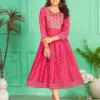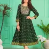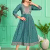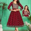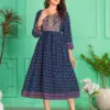 | Top | Chanderi Print & Scree Print Flored Long Kurti With Capsule Embroidery Yock With Lace |