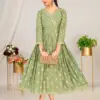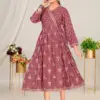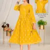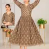 Top Chanderi Plain Screen Print Flared Long Kedia Style Kurti with Handwork and Dori Tussel. Screen Print Border On Daman