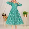 Top Chanderi Plain Screen Print Flared Long Kedia Style Kurti with Handwork and Dori Tussel. Screen Print Border On Daman