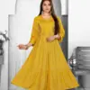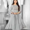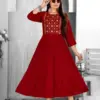 | Top | Rayon Plain Flared Long Kurti with Computer Embroidery Work on Choli with Silai Pattern. 3/4 Sleeve with Silai Pattern. |