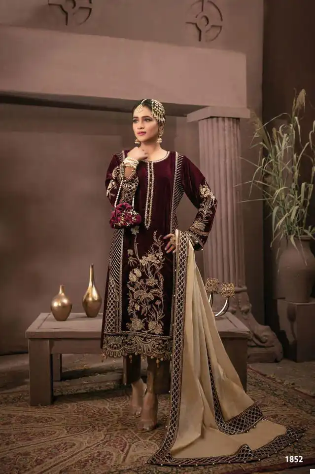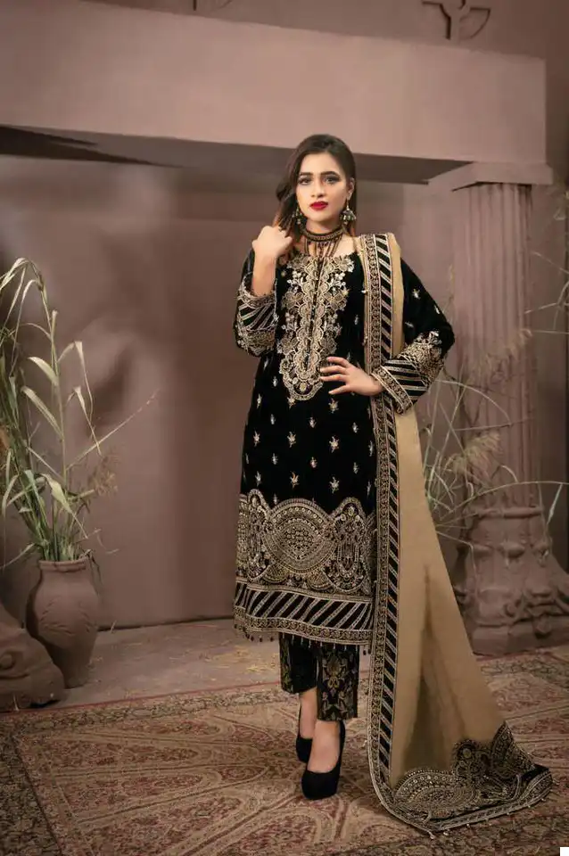 - Sumptuous Velvet Fabric: Experience the ultimate luxury of velvet fabric against your skin. Velvet offers not only a plush and velvety texture but also excellent insulation, making these salwar suits perfect for the winter season.