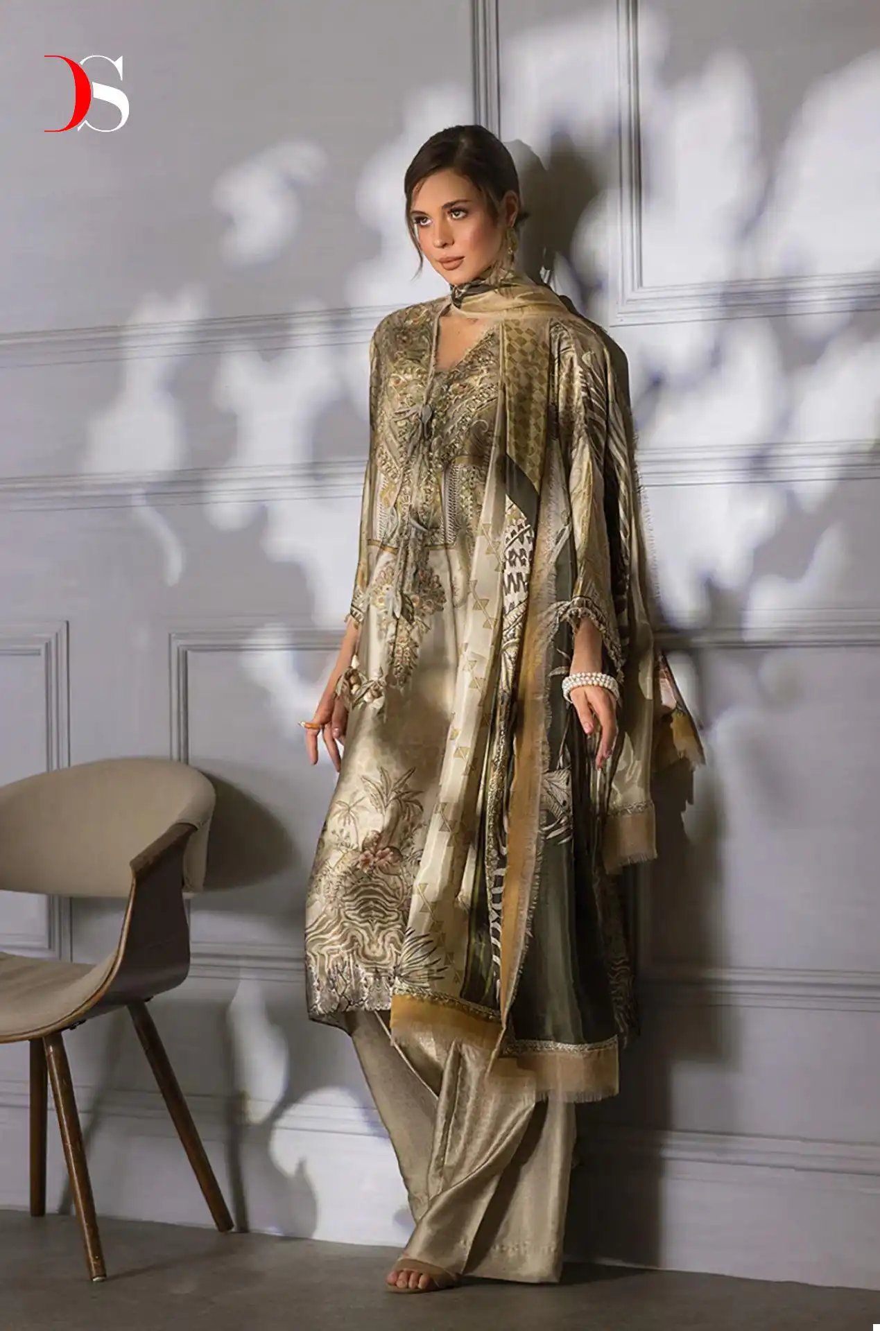 - Fabric: Crafted from pure Japan satin silk, the top features a stunning digital print with intricate embroidery, adding a touch of glamour to your look.