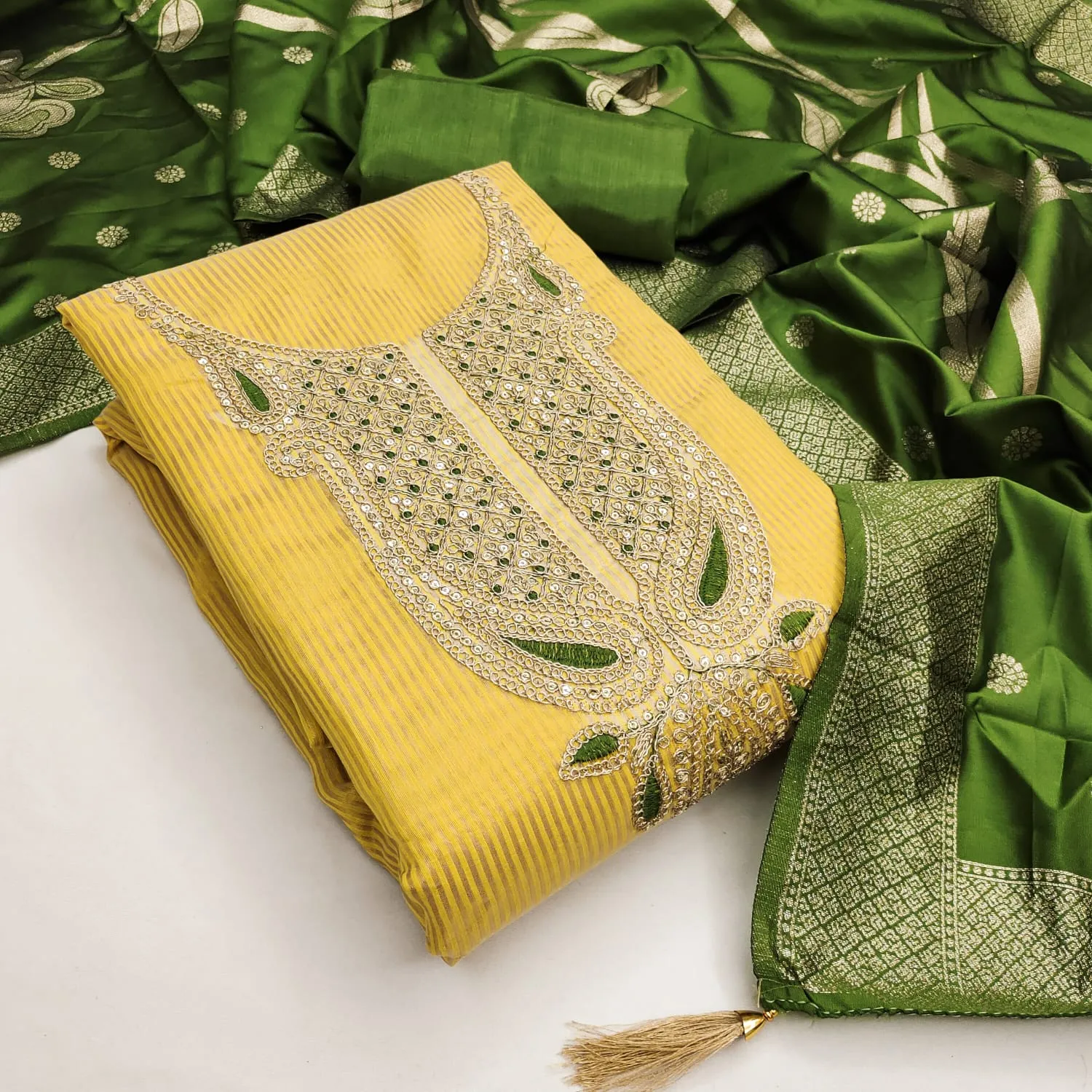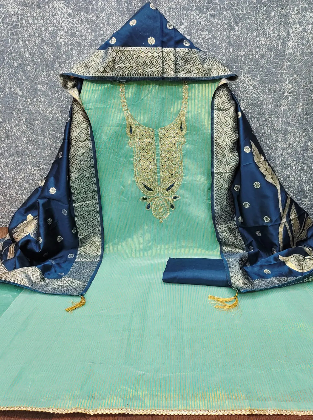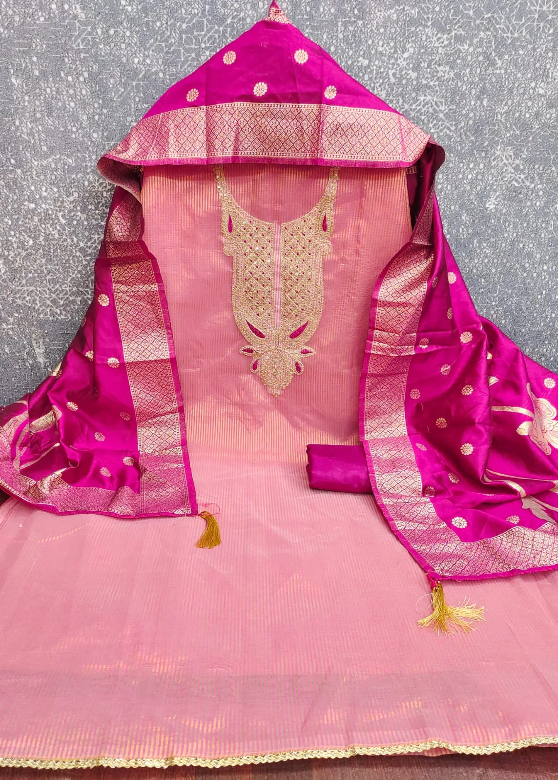 | Details | Top Fabrics : Shimmer Silk Lining Squance Work Bottom + Inner Fabrics : Santoon Dupatta: Banarasi Zakard |