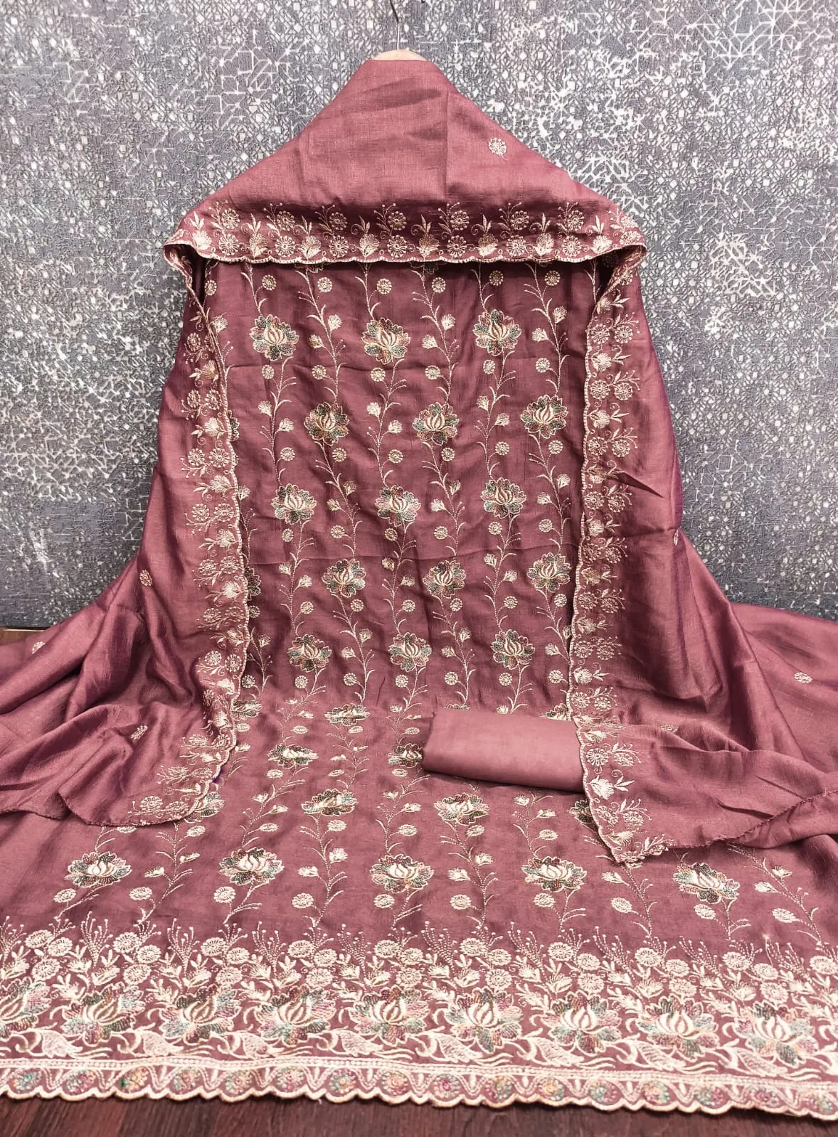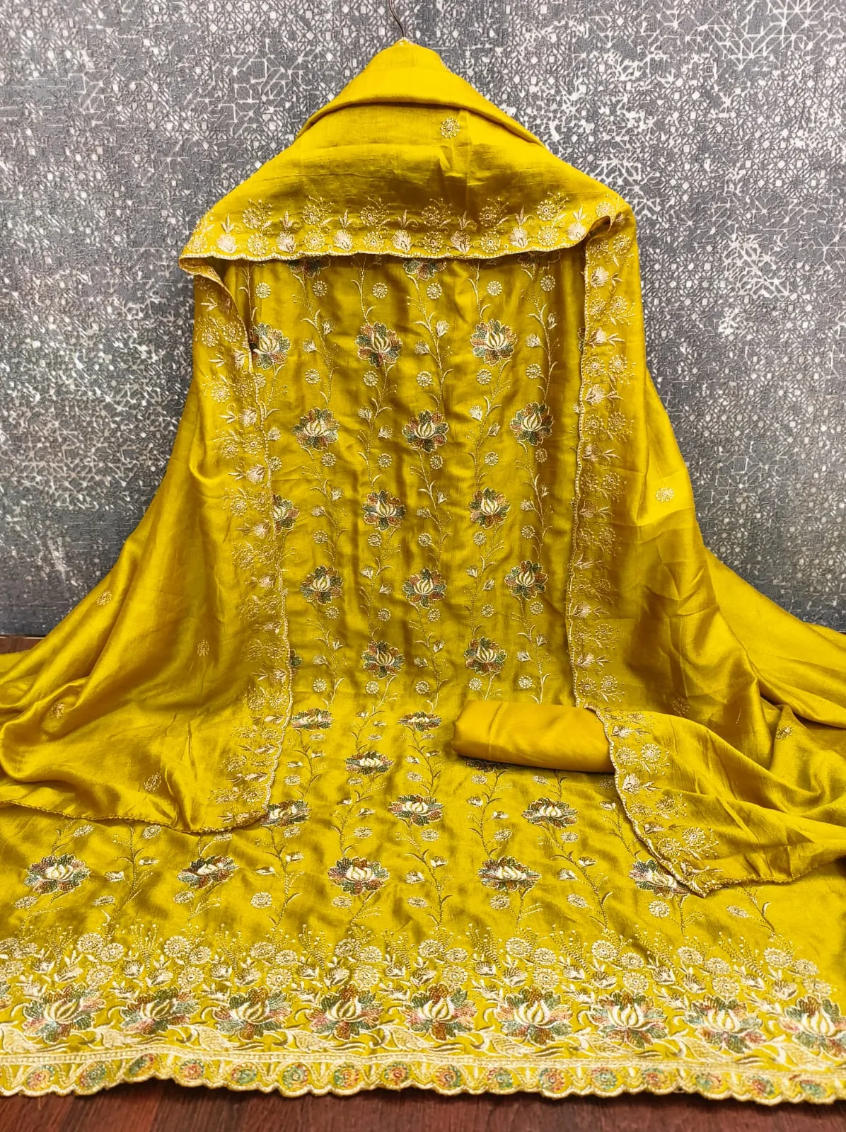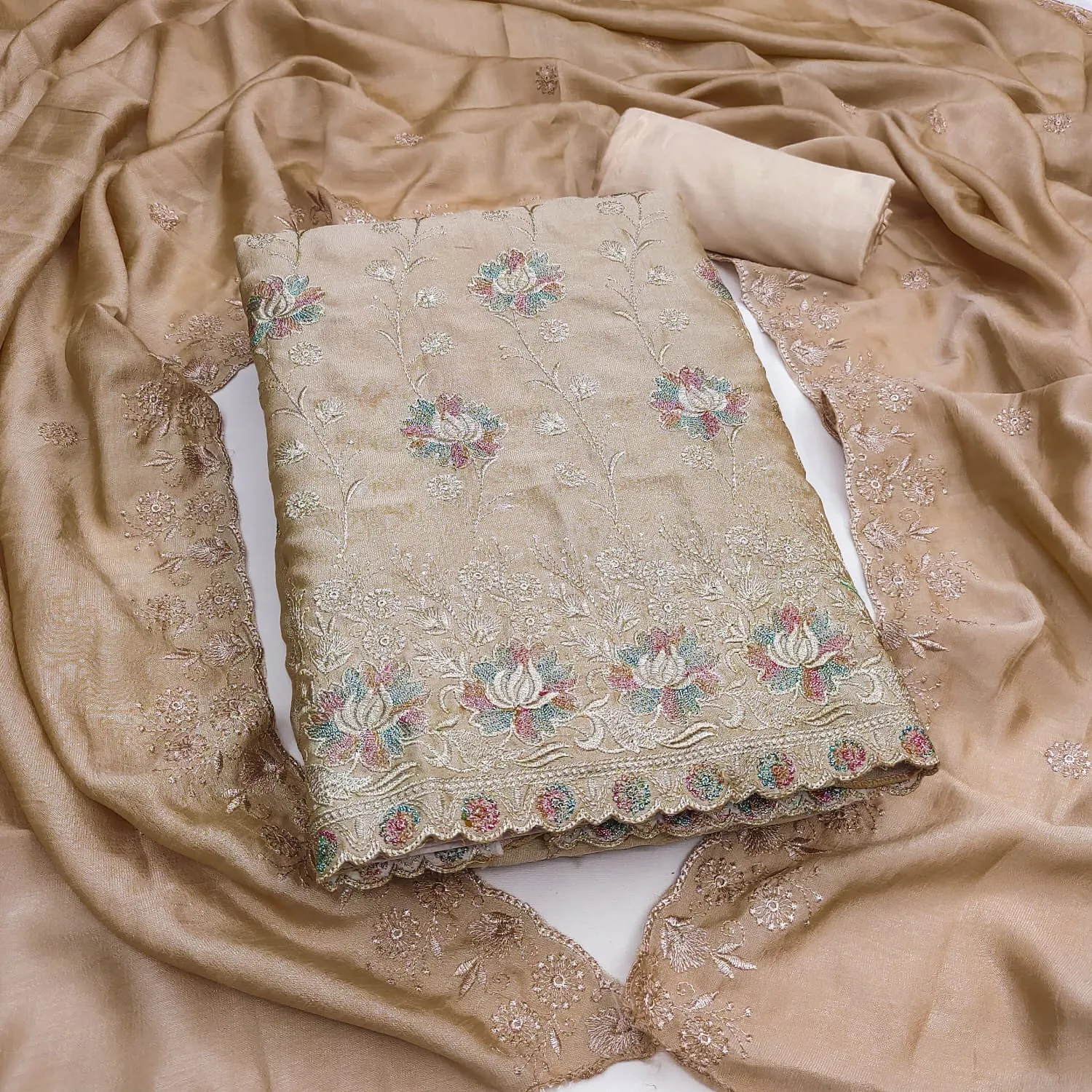 | Details | Top Fabrics : Vichitra Silk Multi Work Bottom Fabric : Santoon Dupattas Fabric : Vichitra Silk Work |