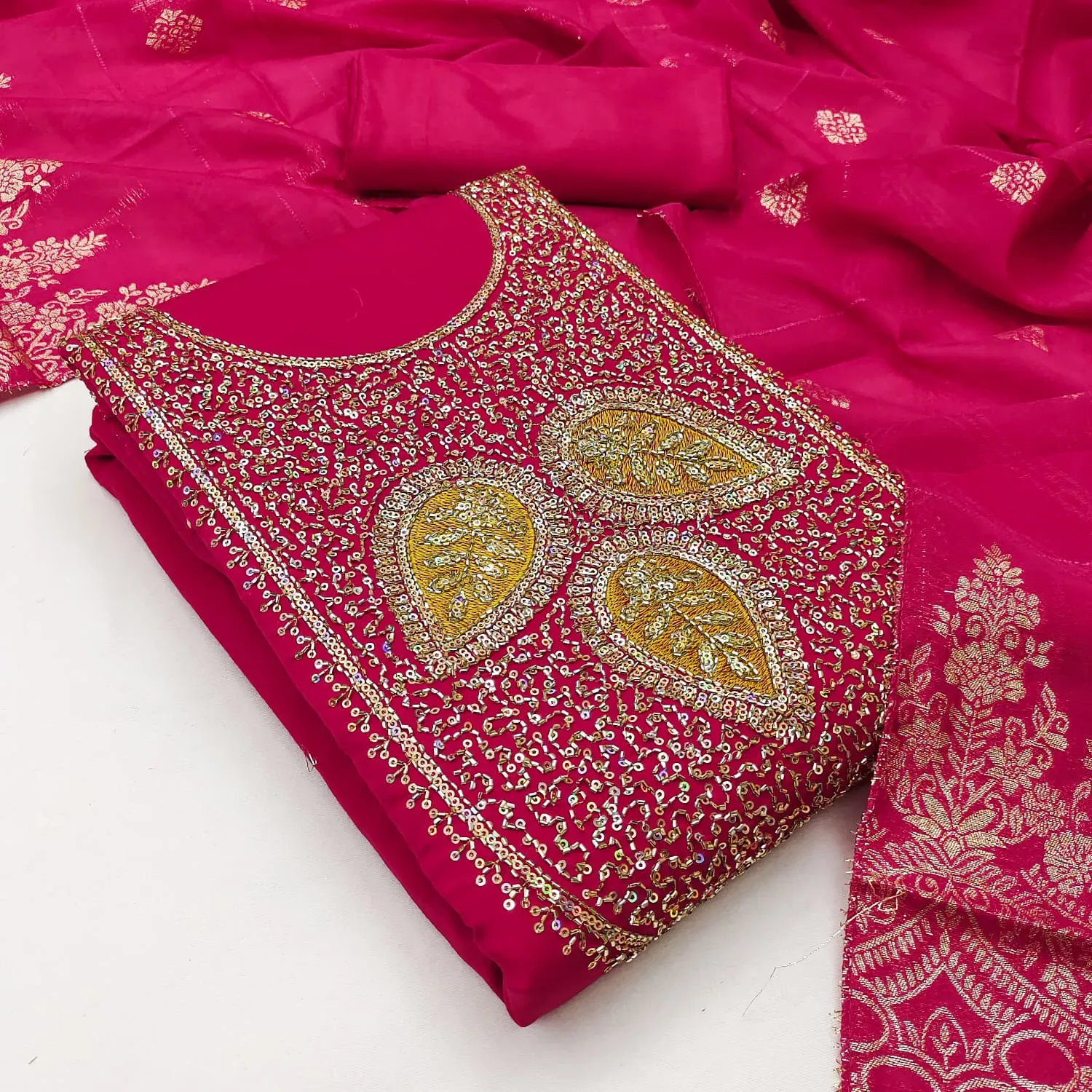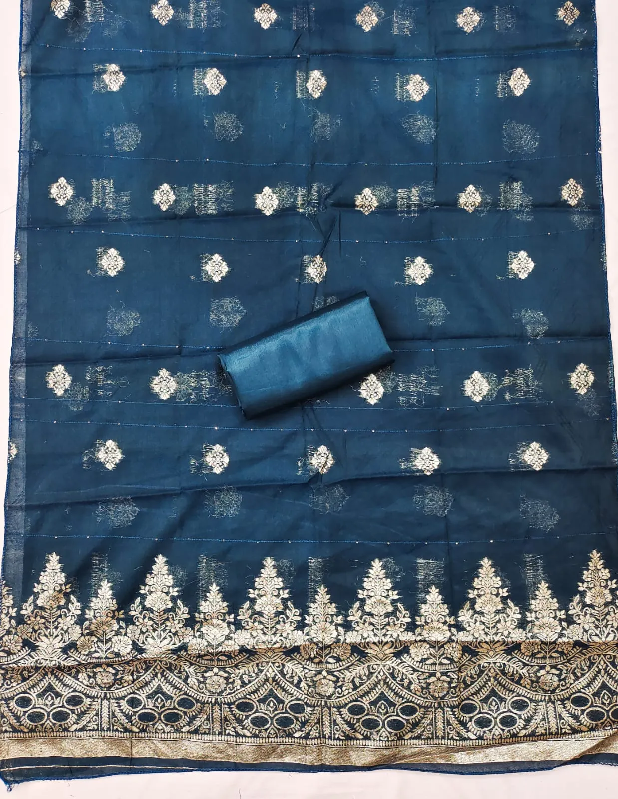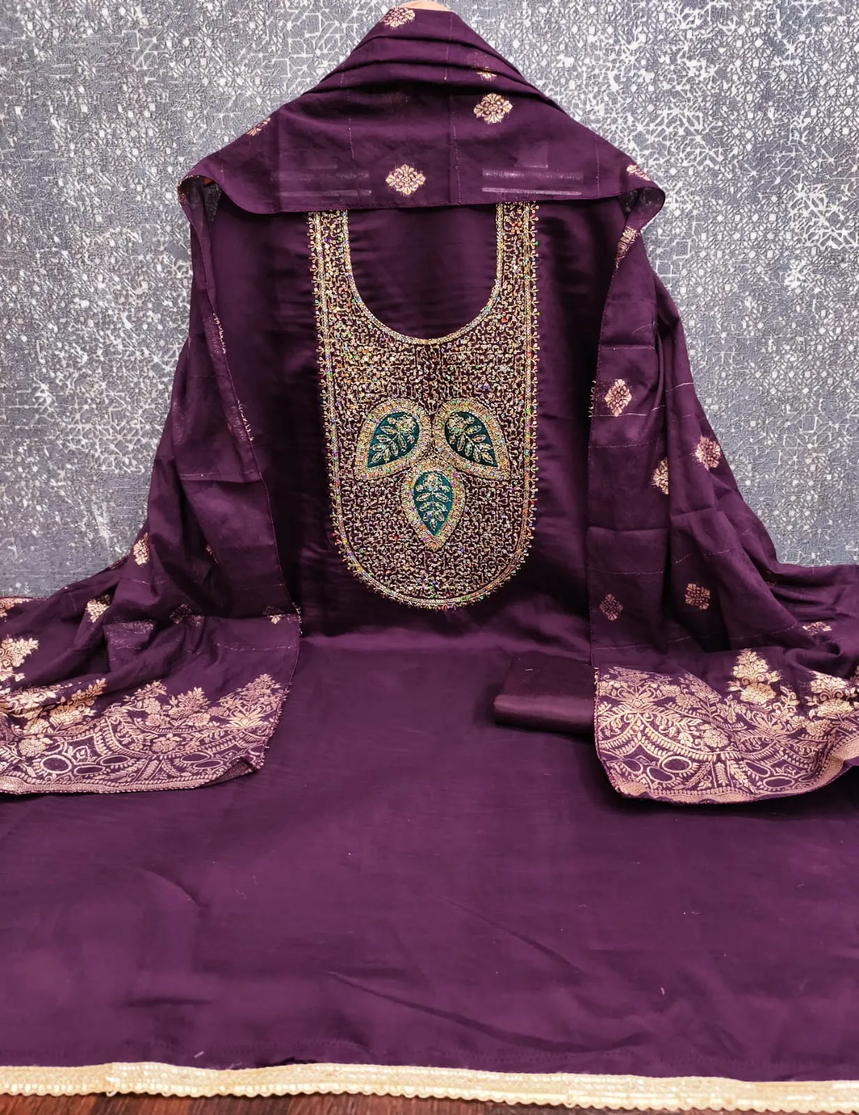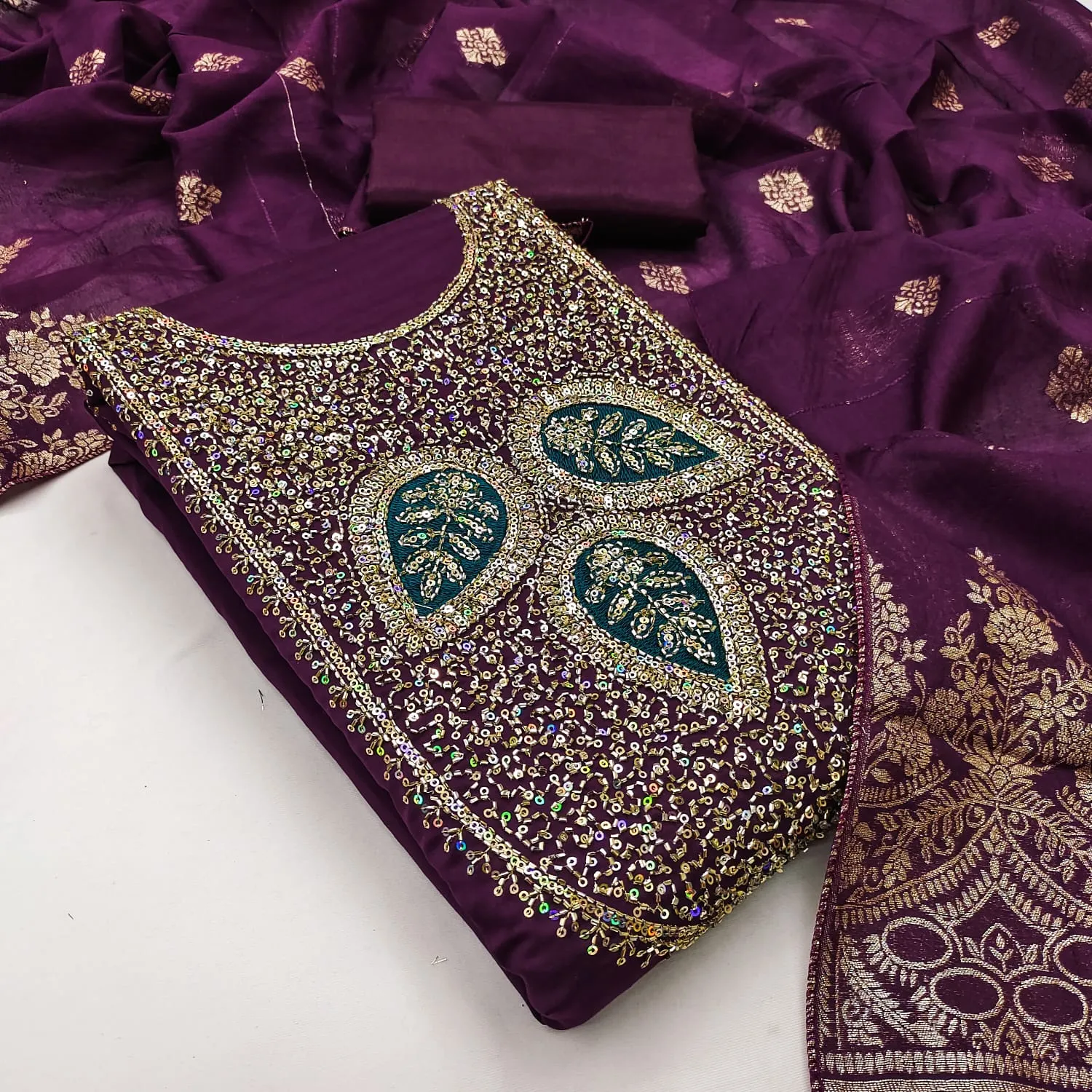 | Details | Top Fabrics:- Pv Roman Silk Codding Bits Work Bottom : Santoon Duppata : Chanderi Zakard |