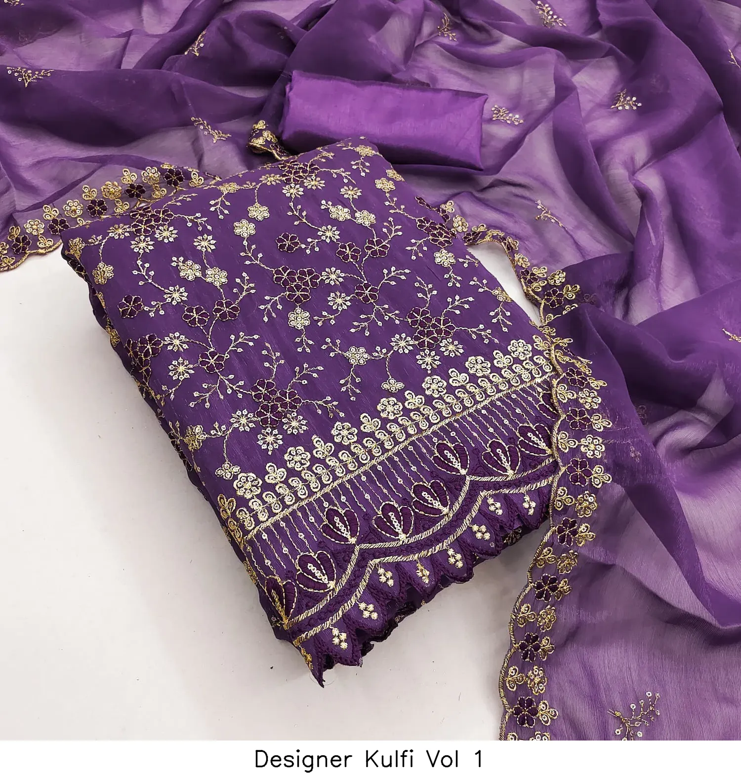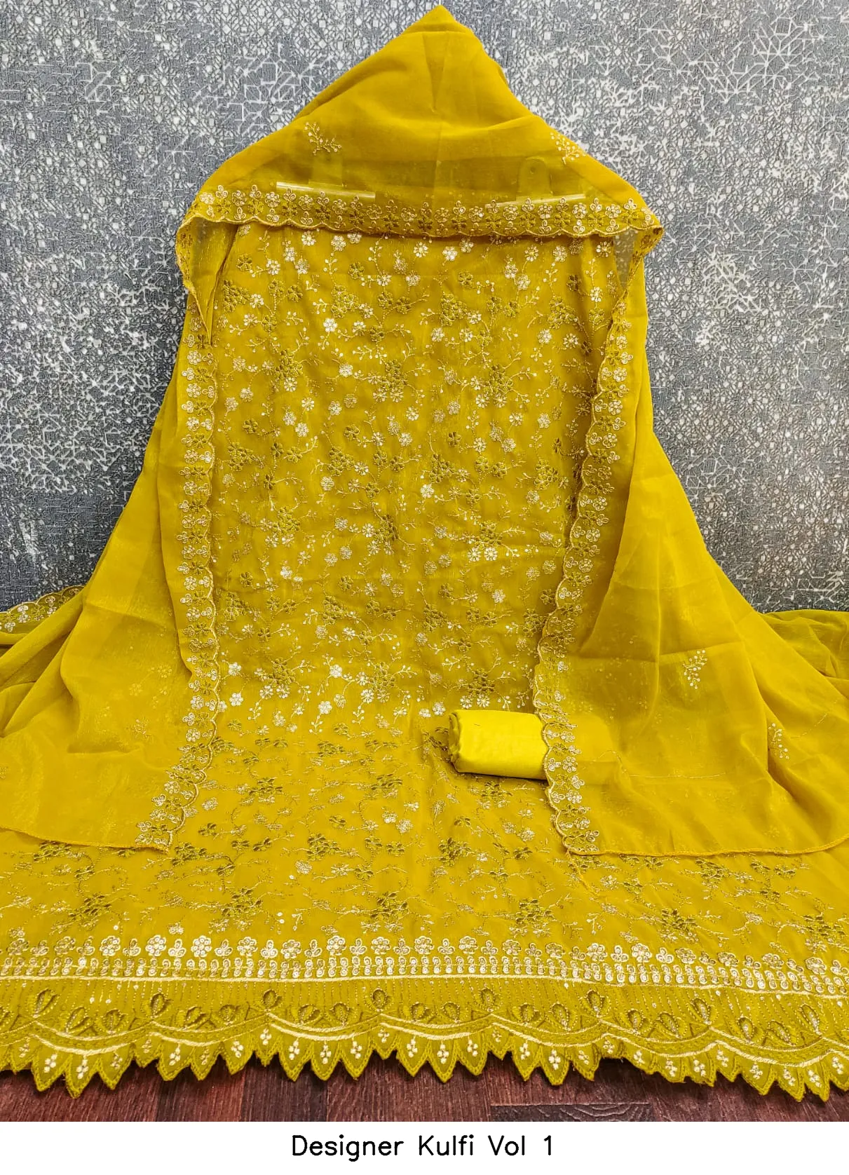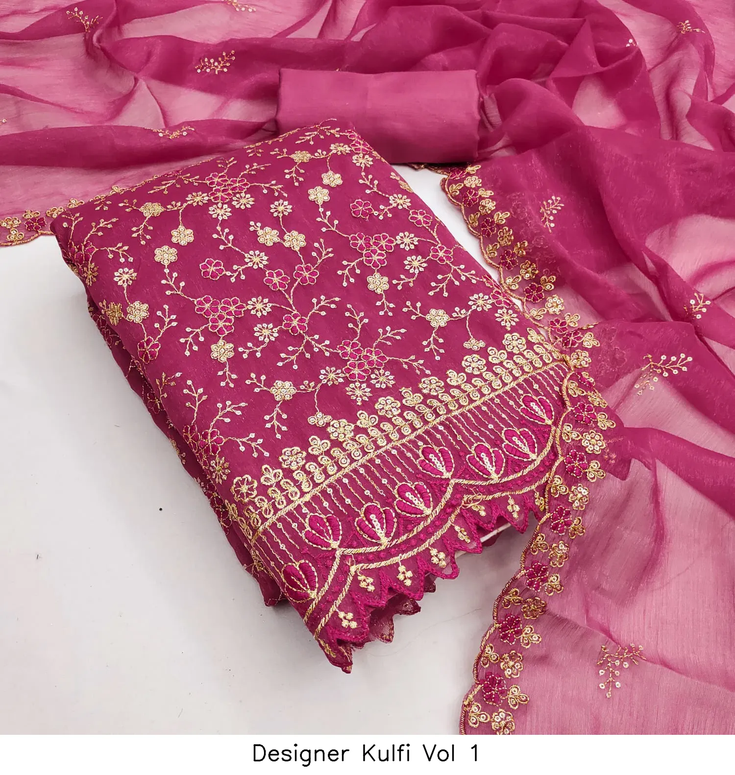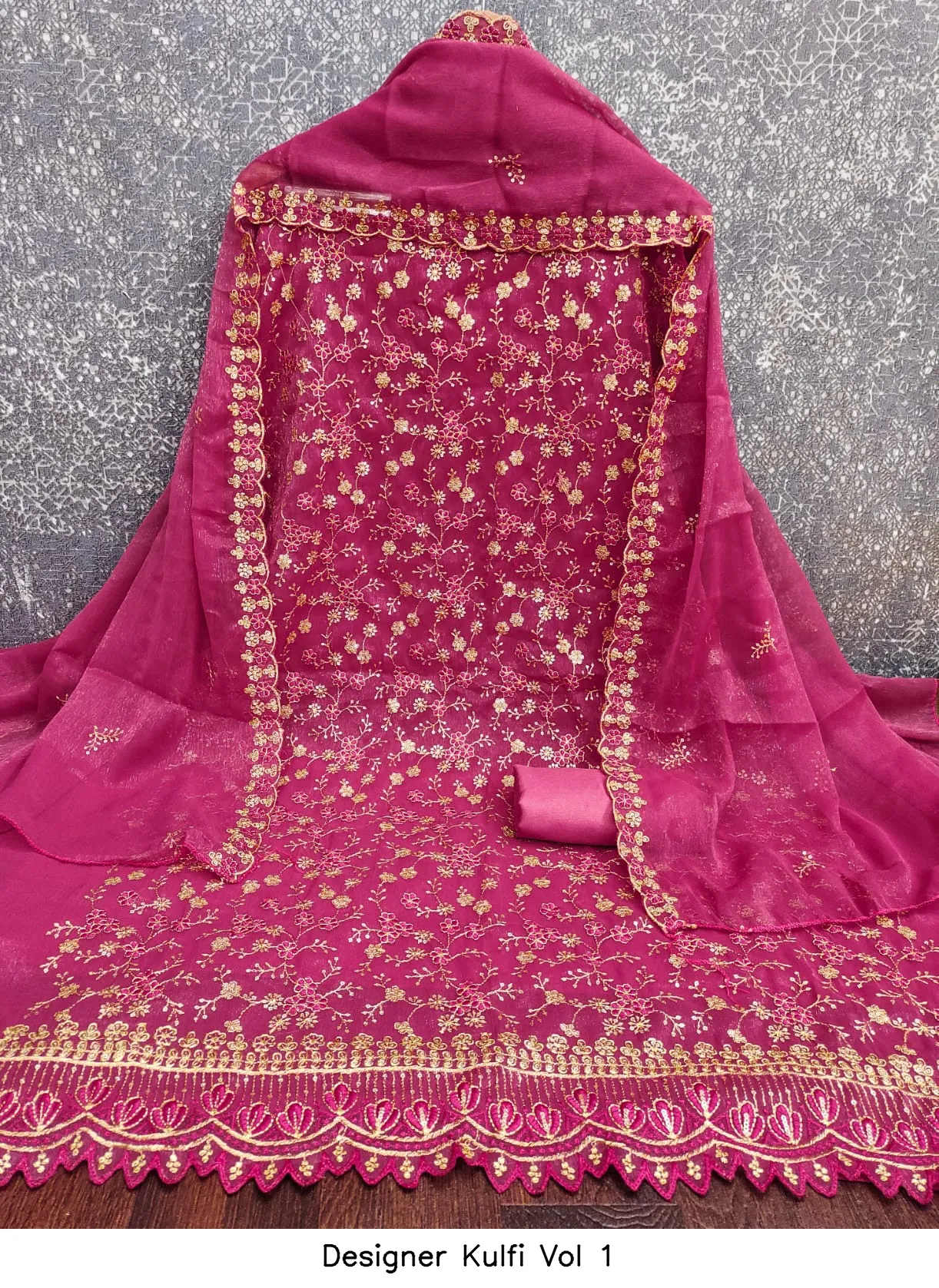 | Details | Top Fabric : Crunchy Simmer Multi Squance Work Bottom : Santoon Dupatta : Chanderi Zakard |