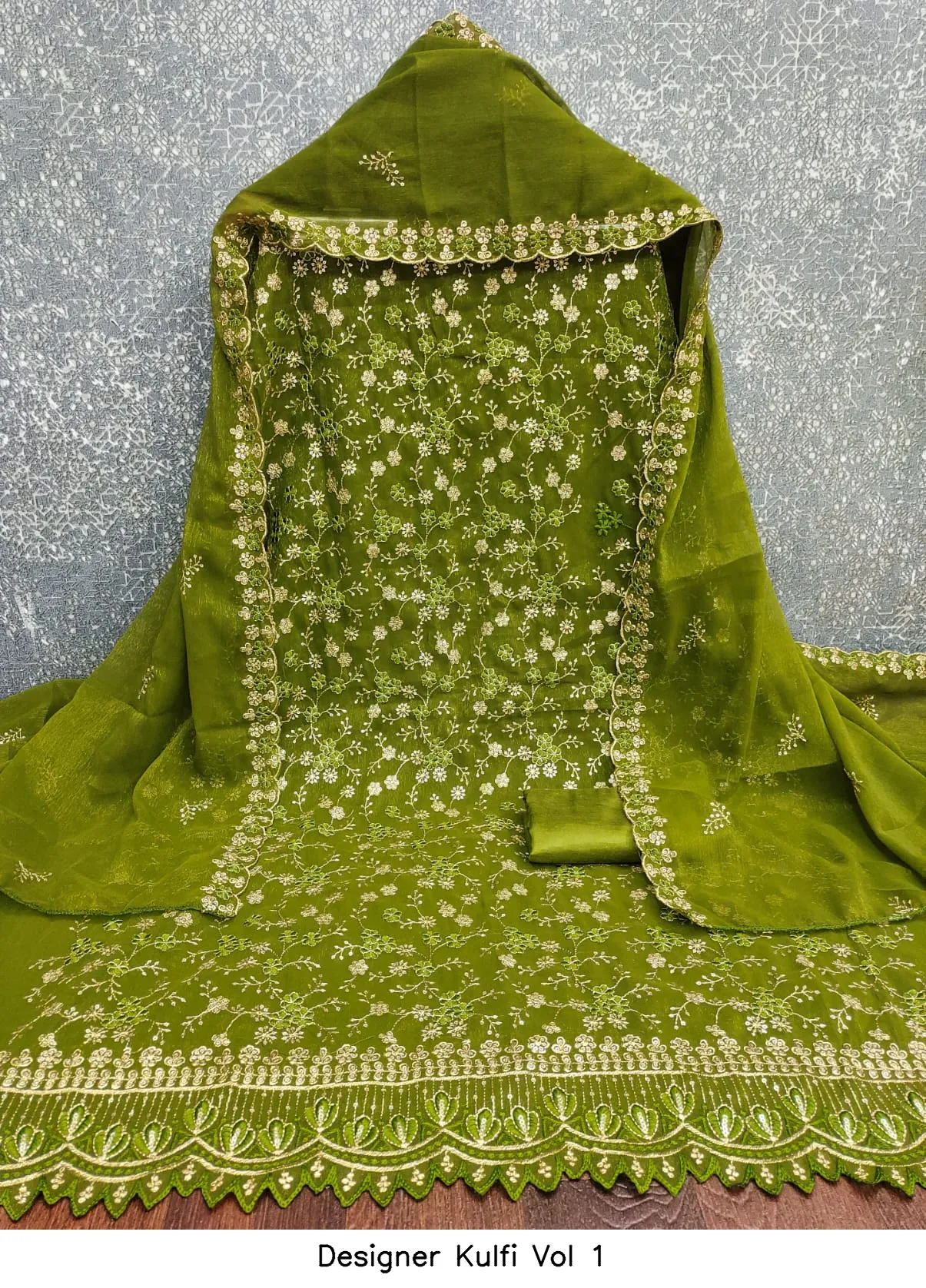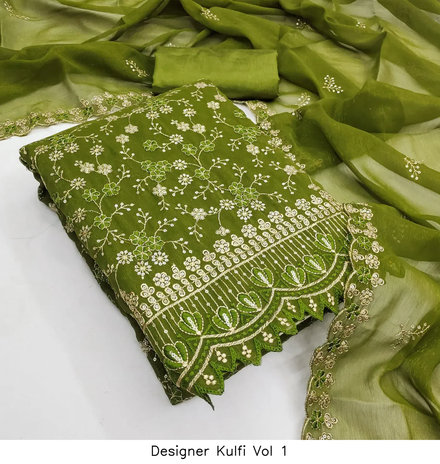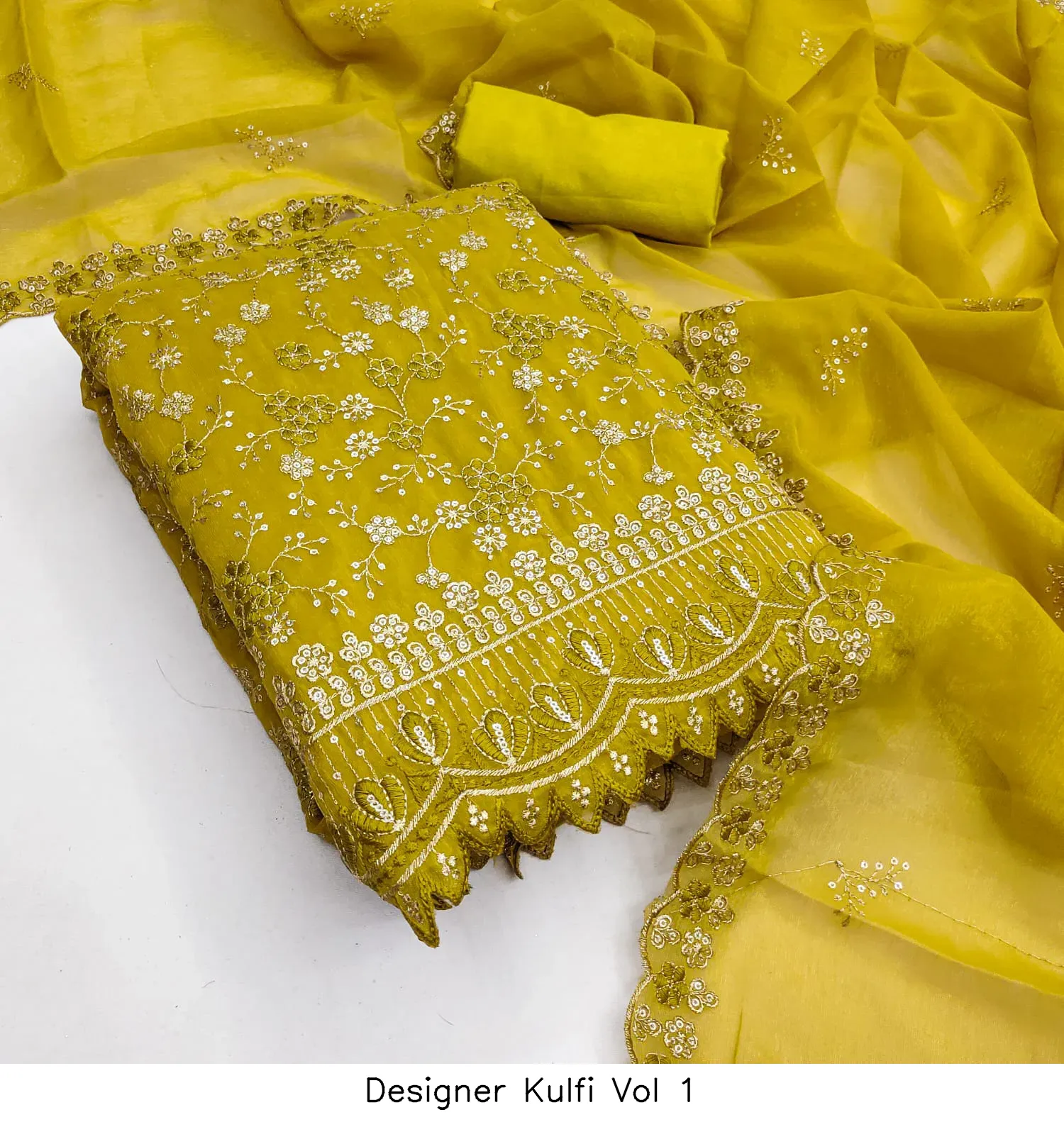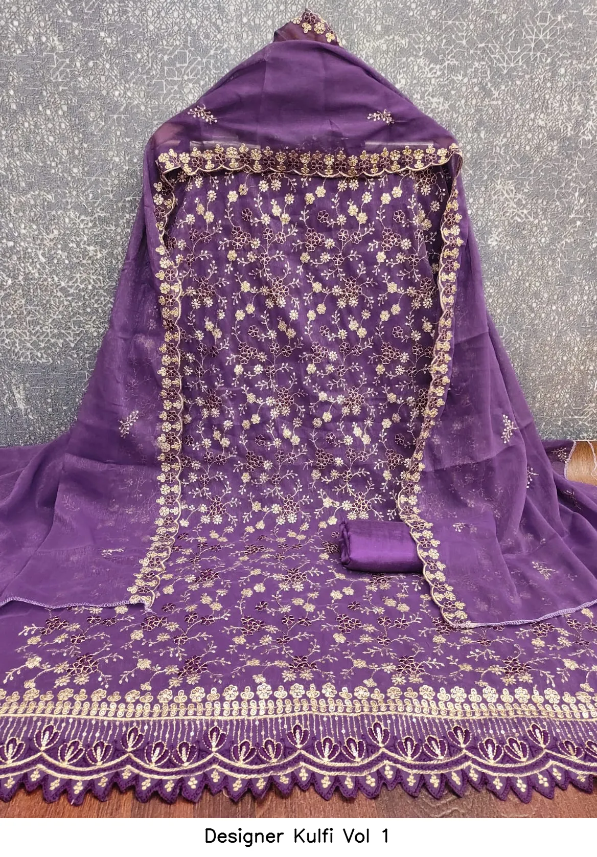 | Details | Top Fabric : Crunchy Simmer Multi Squance Work Bottom : Santoon Dupatta : Chanderi Zakard |