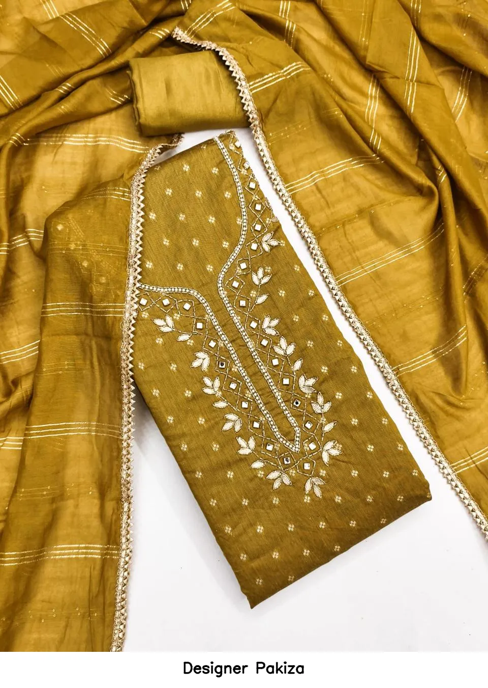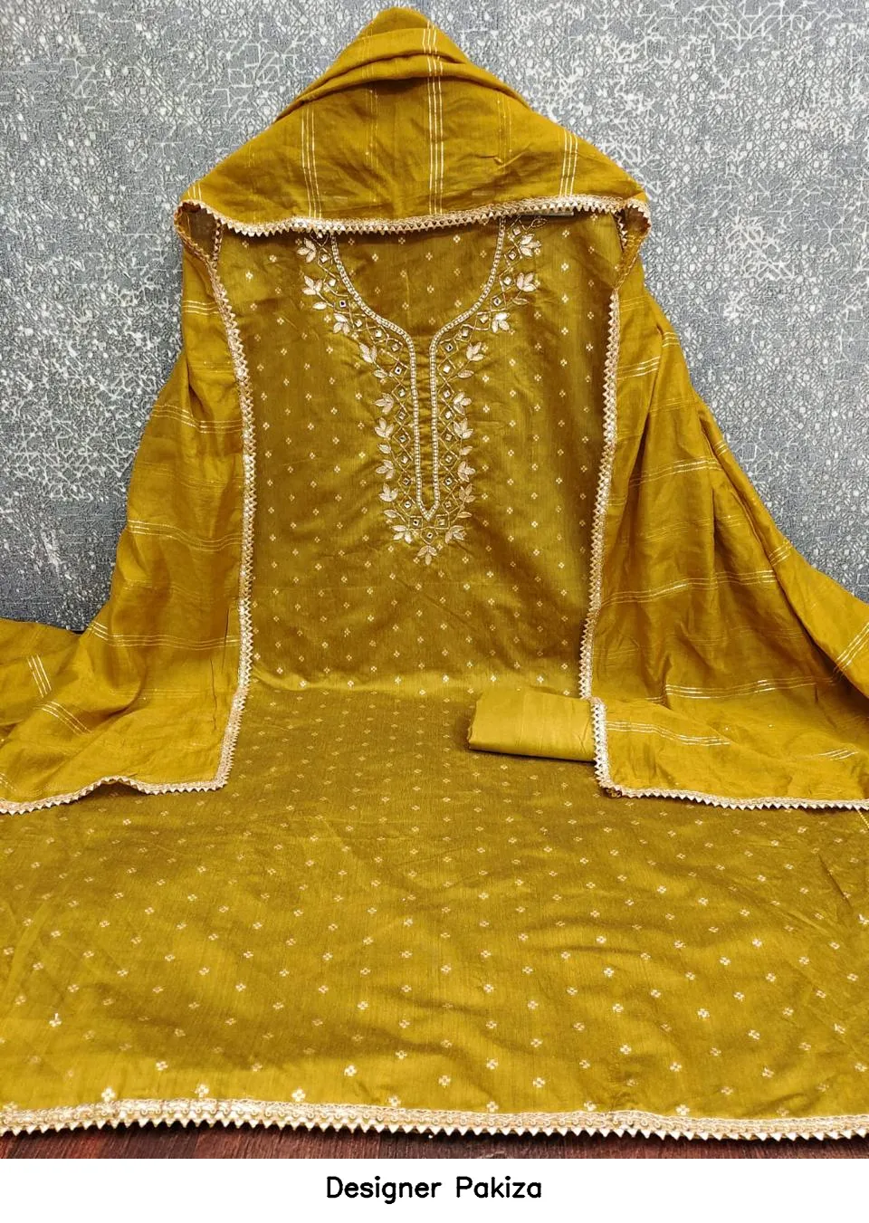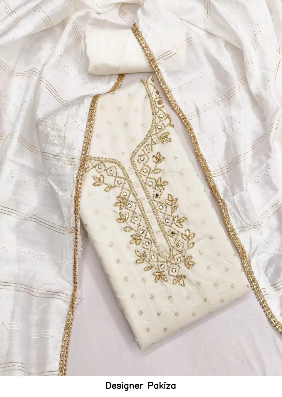| Details | Top Fabric : Modal Rajvadi Booti Fancy Beads Stone Hand Work Bottom : Santoon Dupatta : Chanderi Fanvy Zakard |