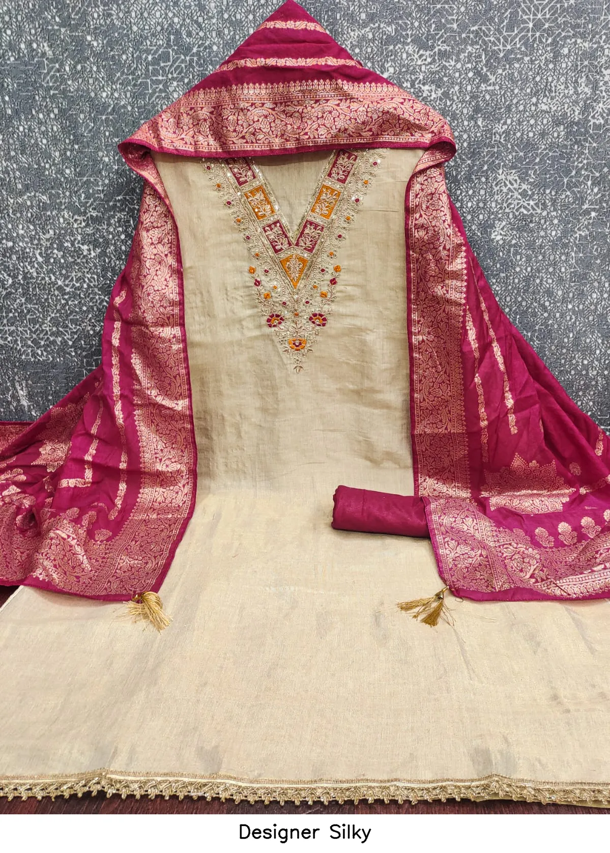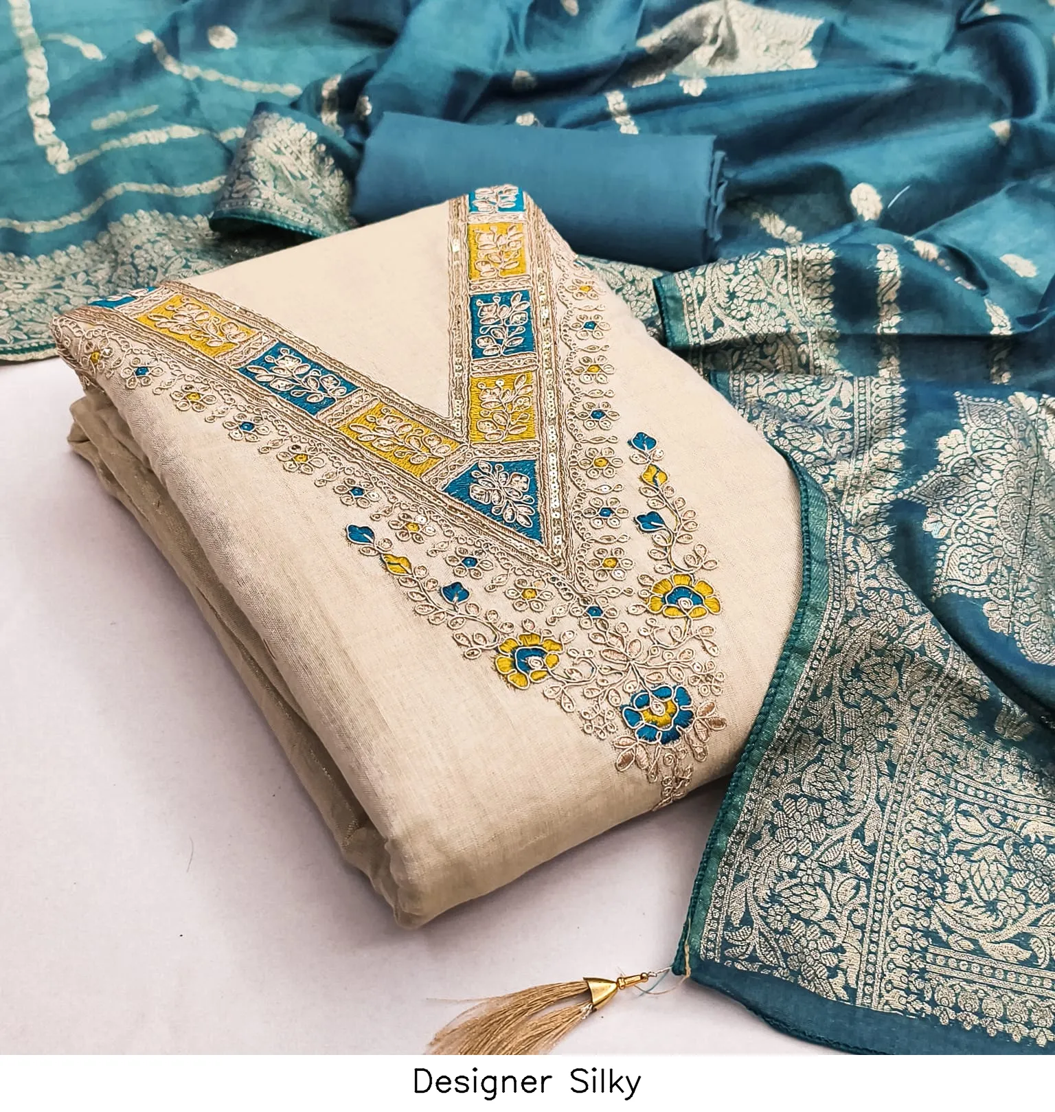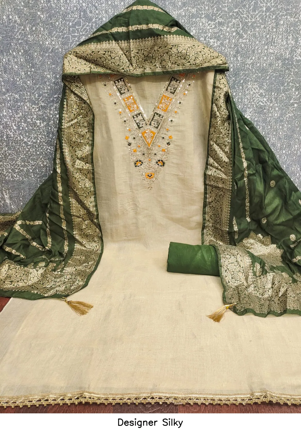 | Details | Top Fabric : Kosma Silk Kodding Sequence Work Bottom : Inner : Santoon Dupatta : Chanderi Silk Zakard |