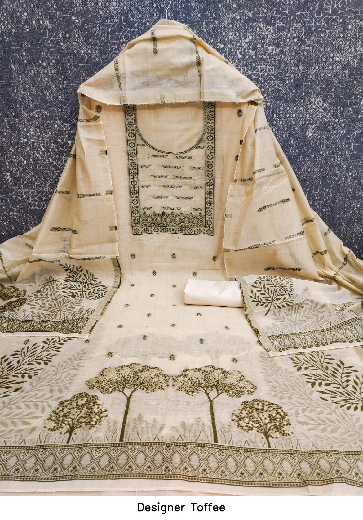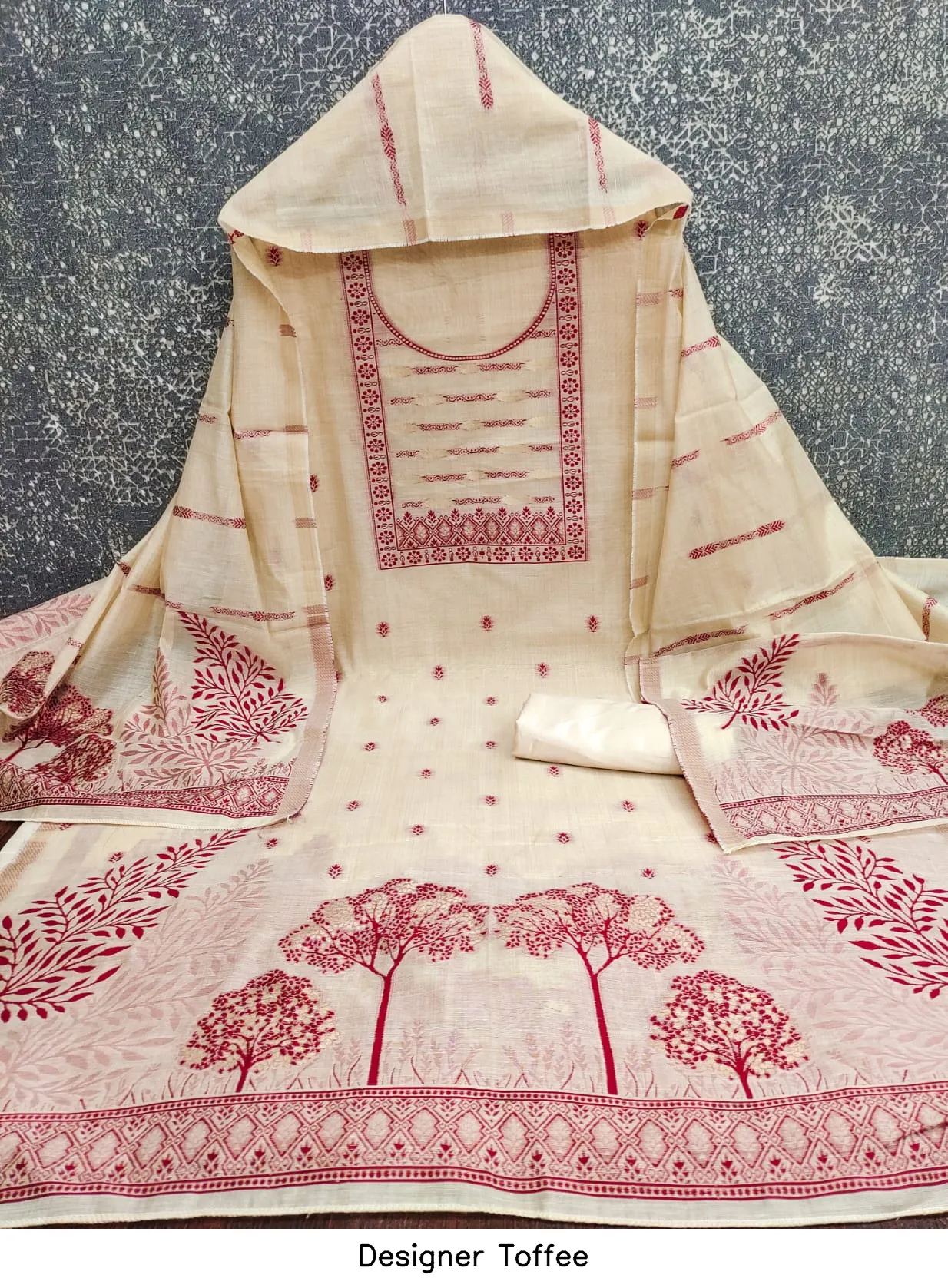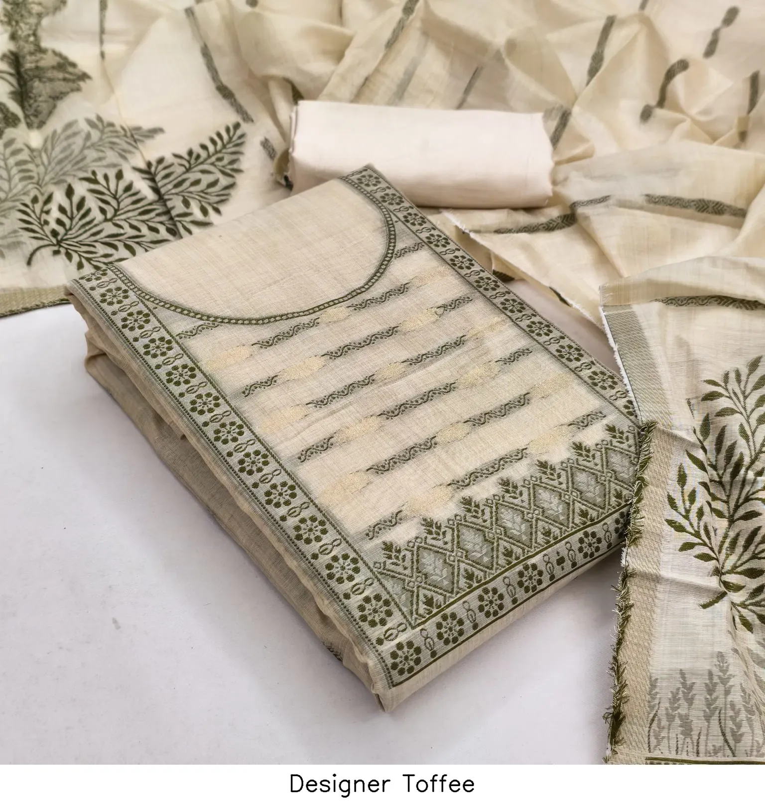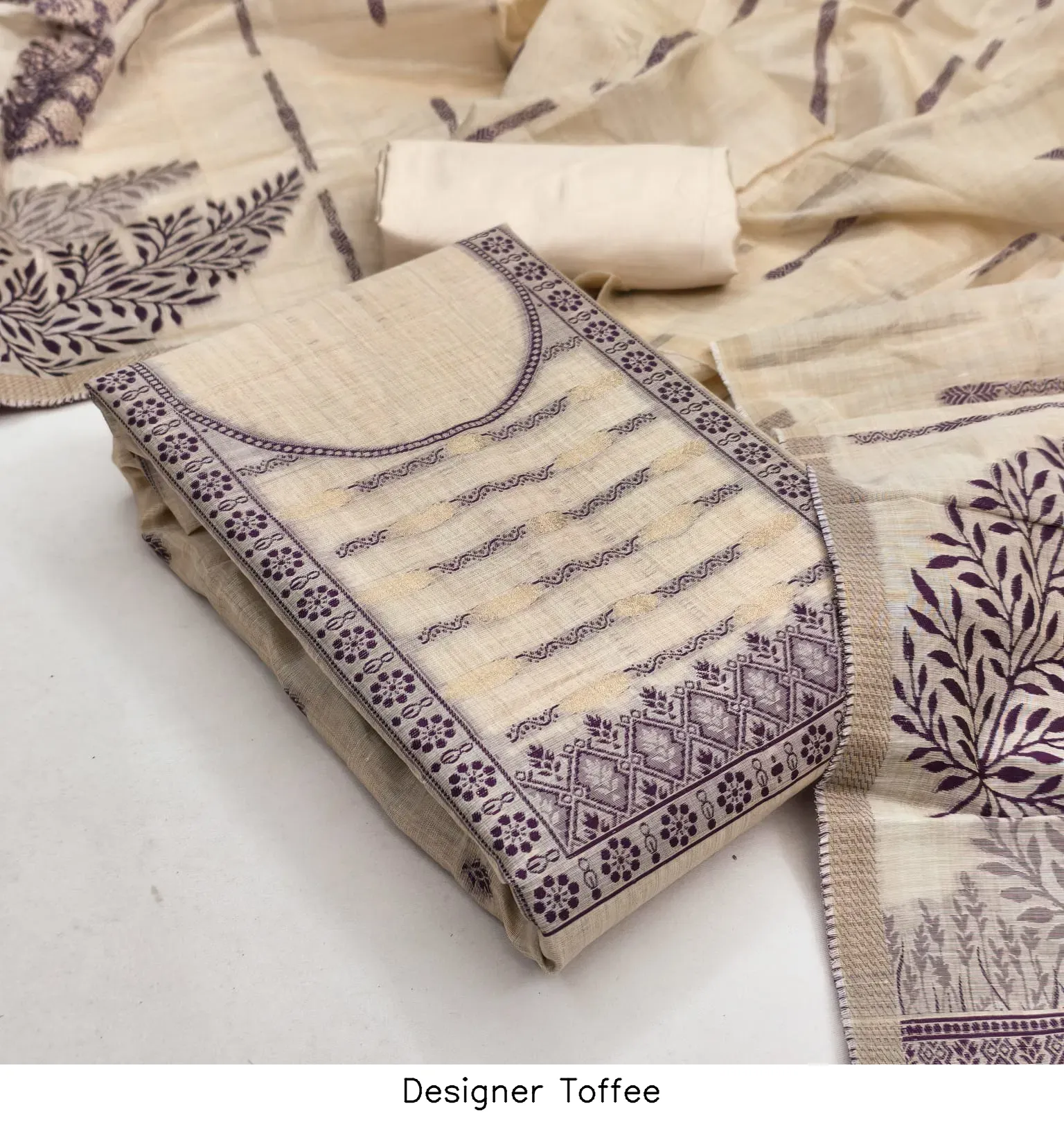 | Details | Top : Semi Jamdani Weiving Fancy Jacquard Bottom : Inner : Santoon Dupatta : Semi Jamdani Weiving Pallu Jaquard |